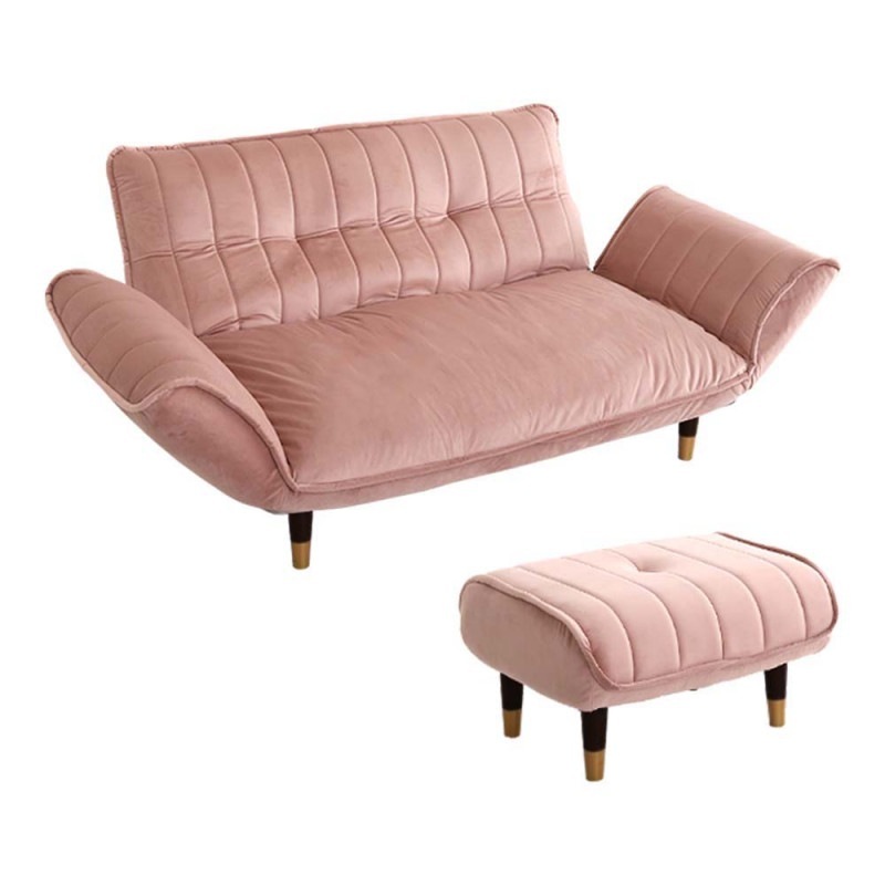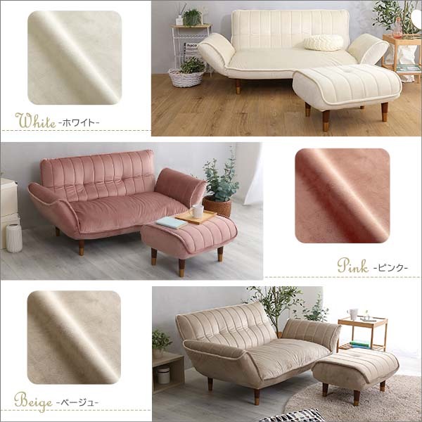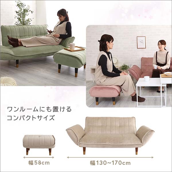 ベロア生地のコンパクトカウチソファ用2人掛け+オットマンセット!