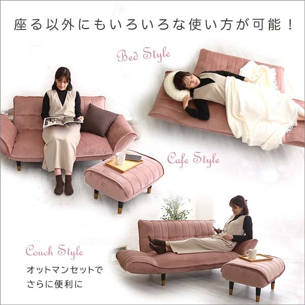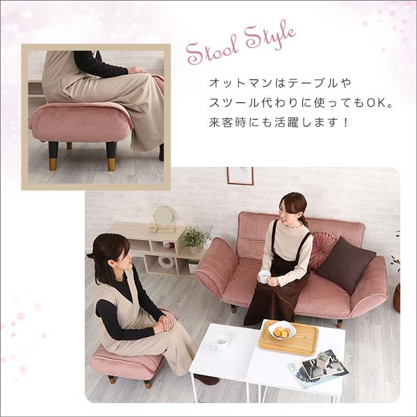 大人かわいいインテリア ベロアカウチソファ 2人掛け+オットマンセット【Chammy -チャミー-】SH-07-OKBA2P-S-PKBK ピンク&ブラック