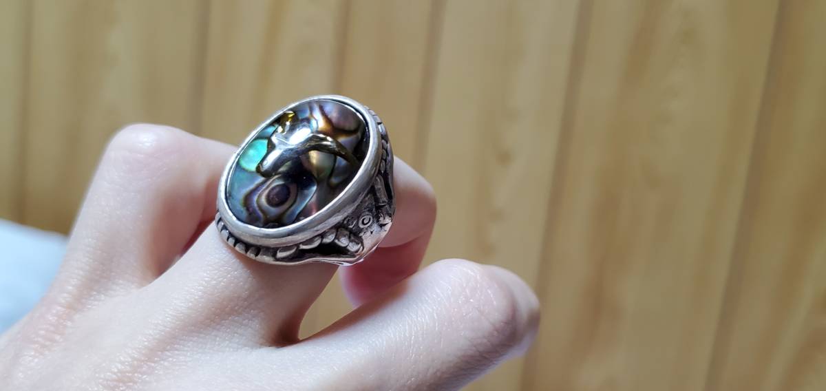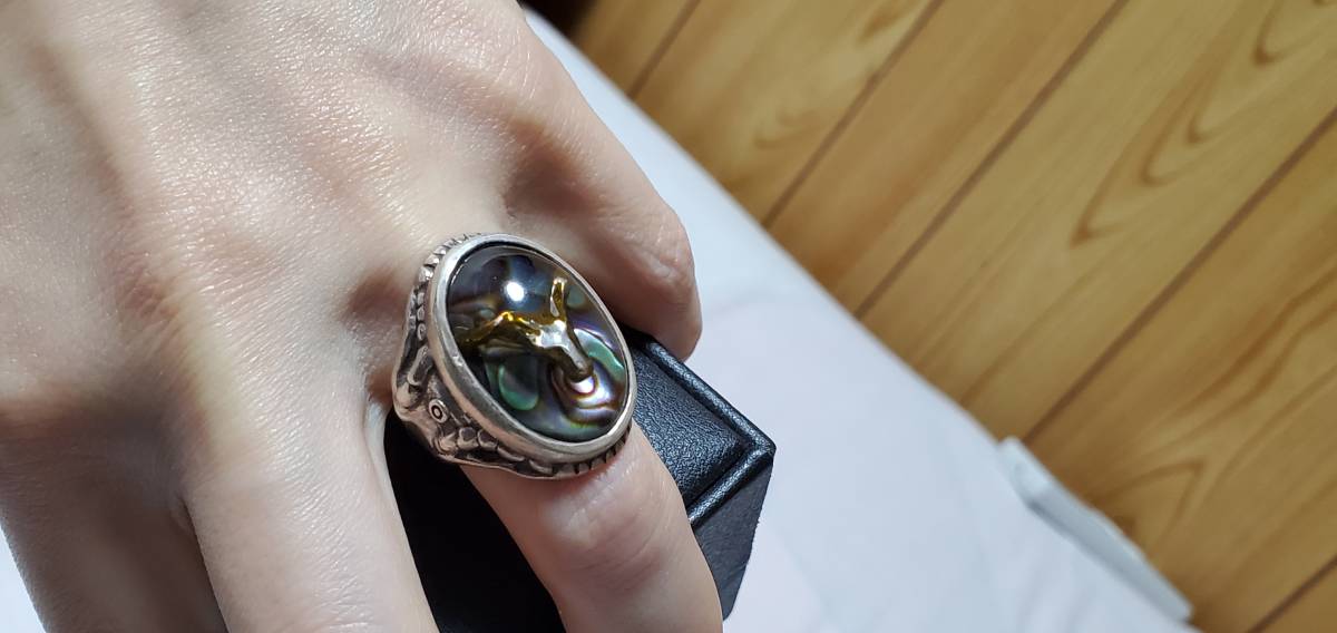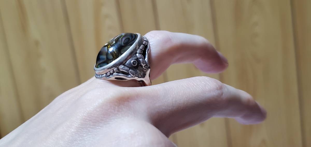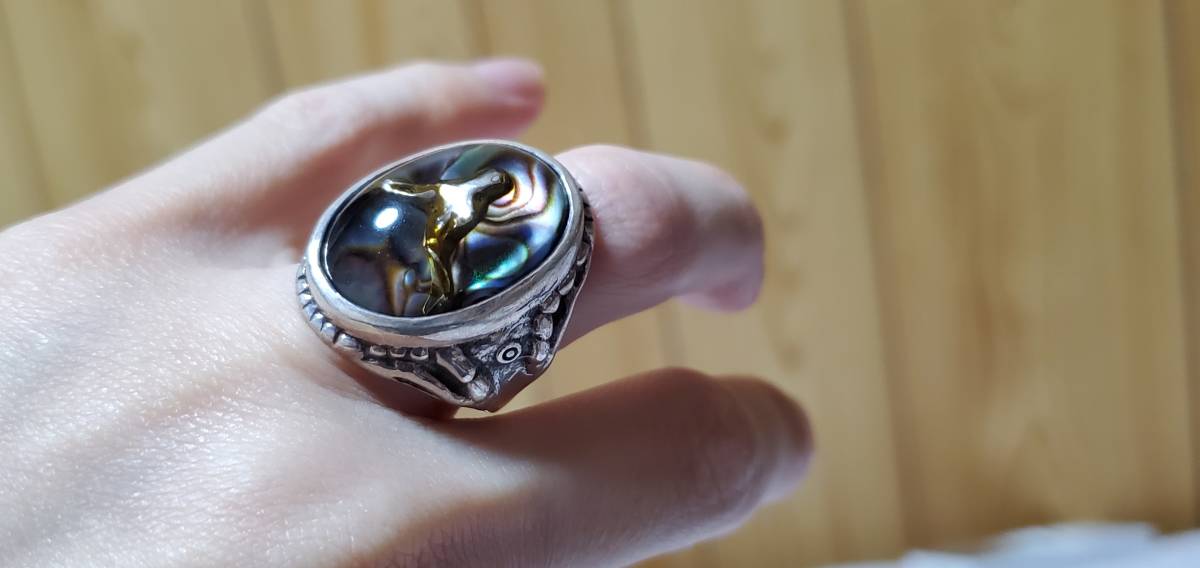 ALEX STREETER 名作!! 『hydeさん同型 限定!Limited Edition SPストーン アバロンシェル バフォメット エンジェルハートリング★』 カボションリフレクションストーン 指輪 メンズ&レディース