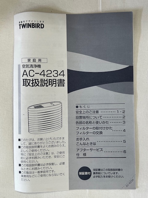【菊水-440】(MZ) TWINBIRD 空気清浄機 ファンディスタイル AC-4234 ホワイト 動作確認ずみ/(S) |