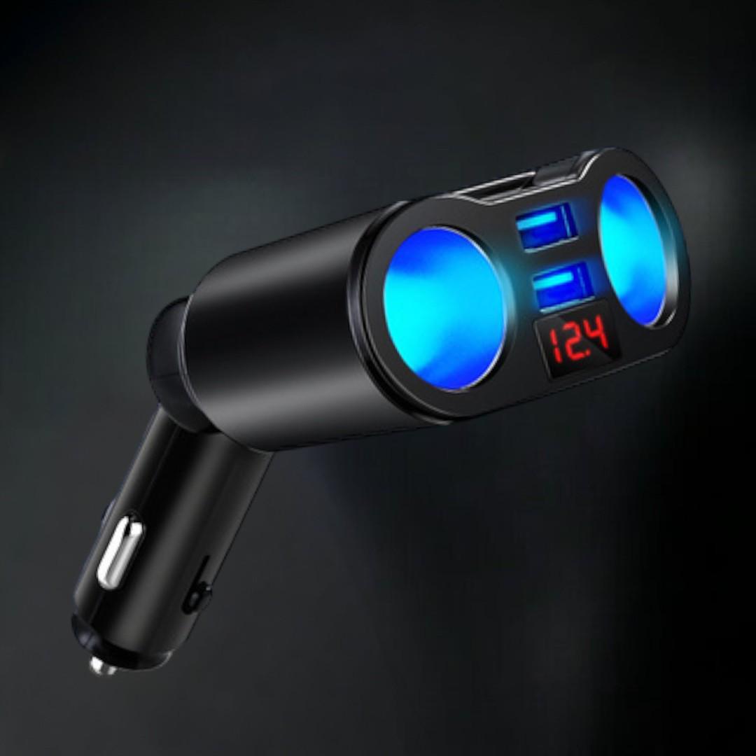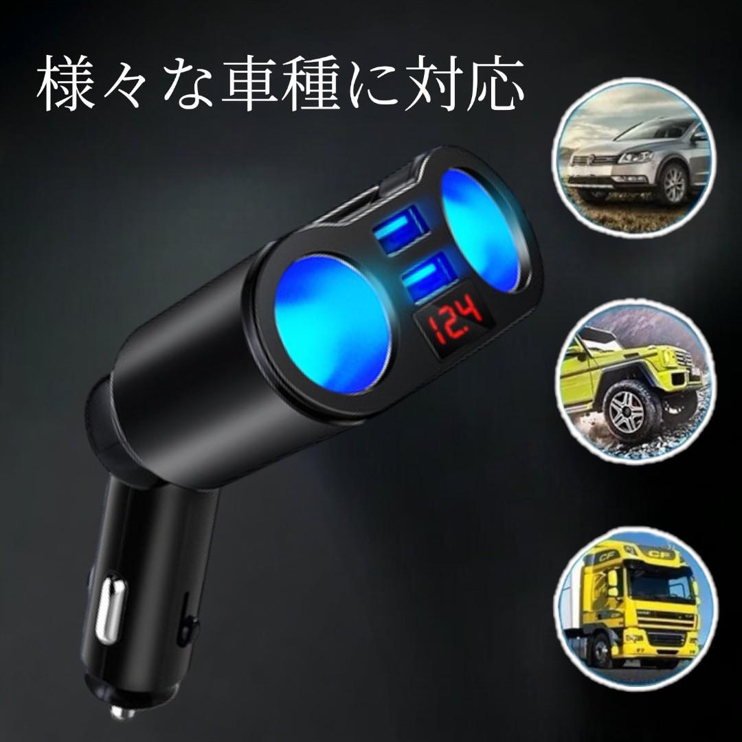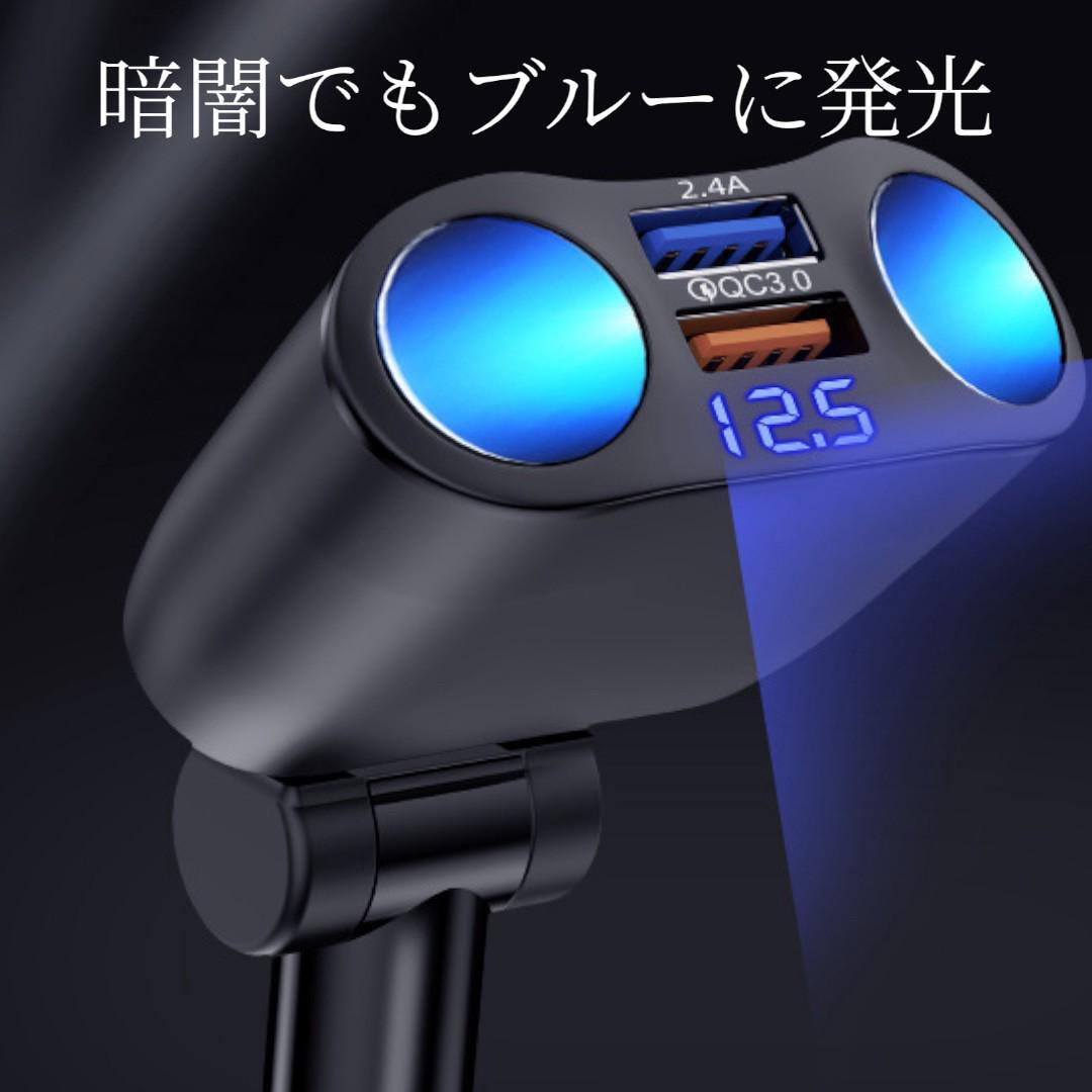 シガーソケット カーチャージャー 車載 2連 充電器 USBポート 高速 増設 角度調整 LEDライト