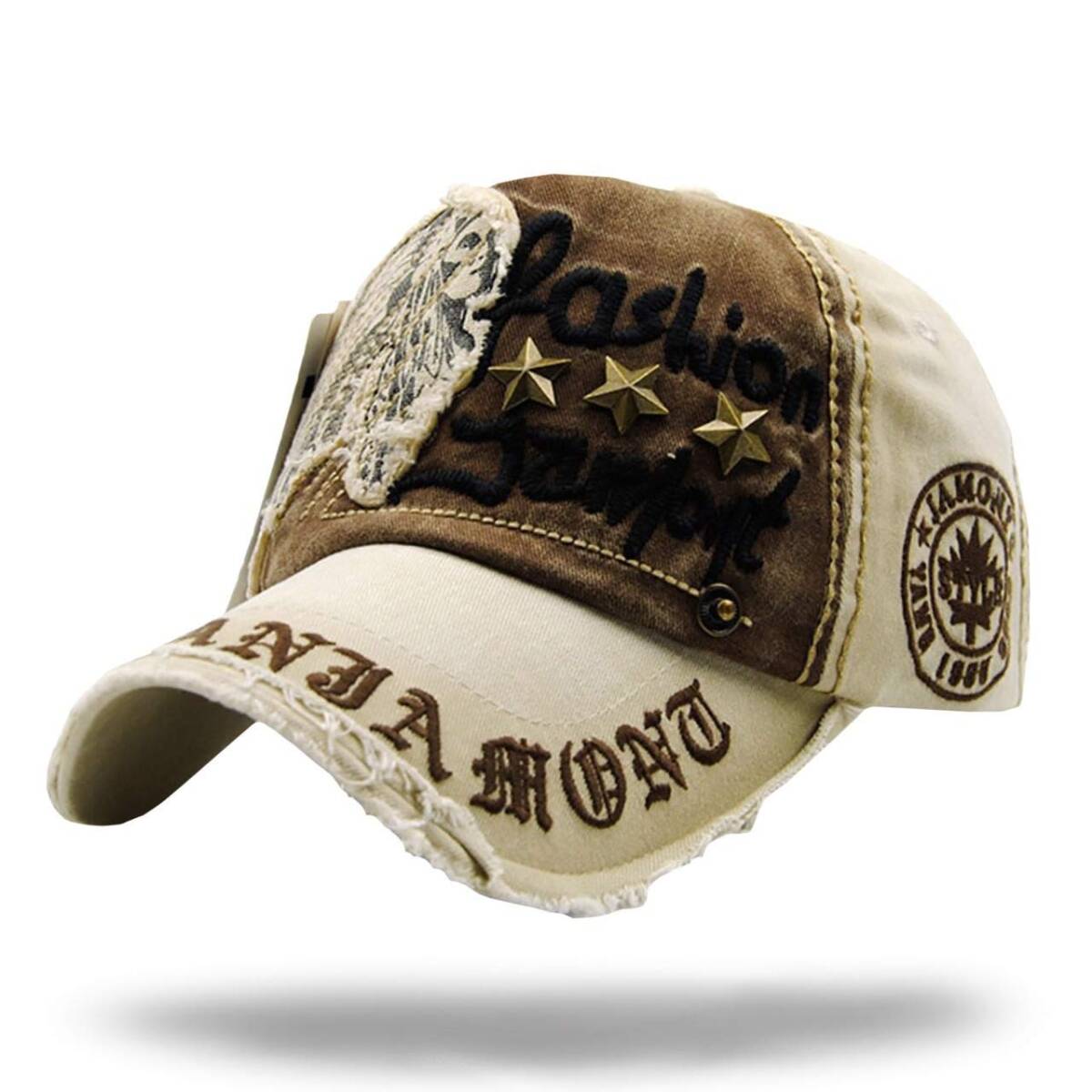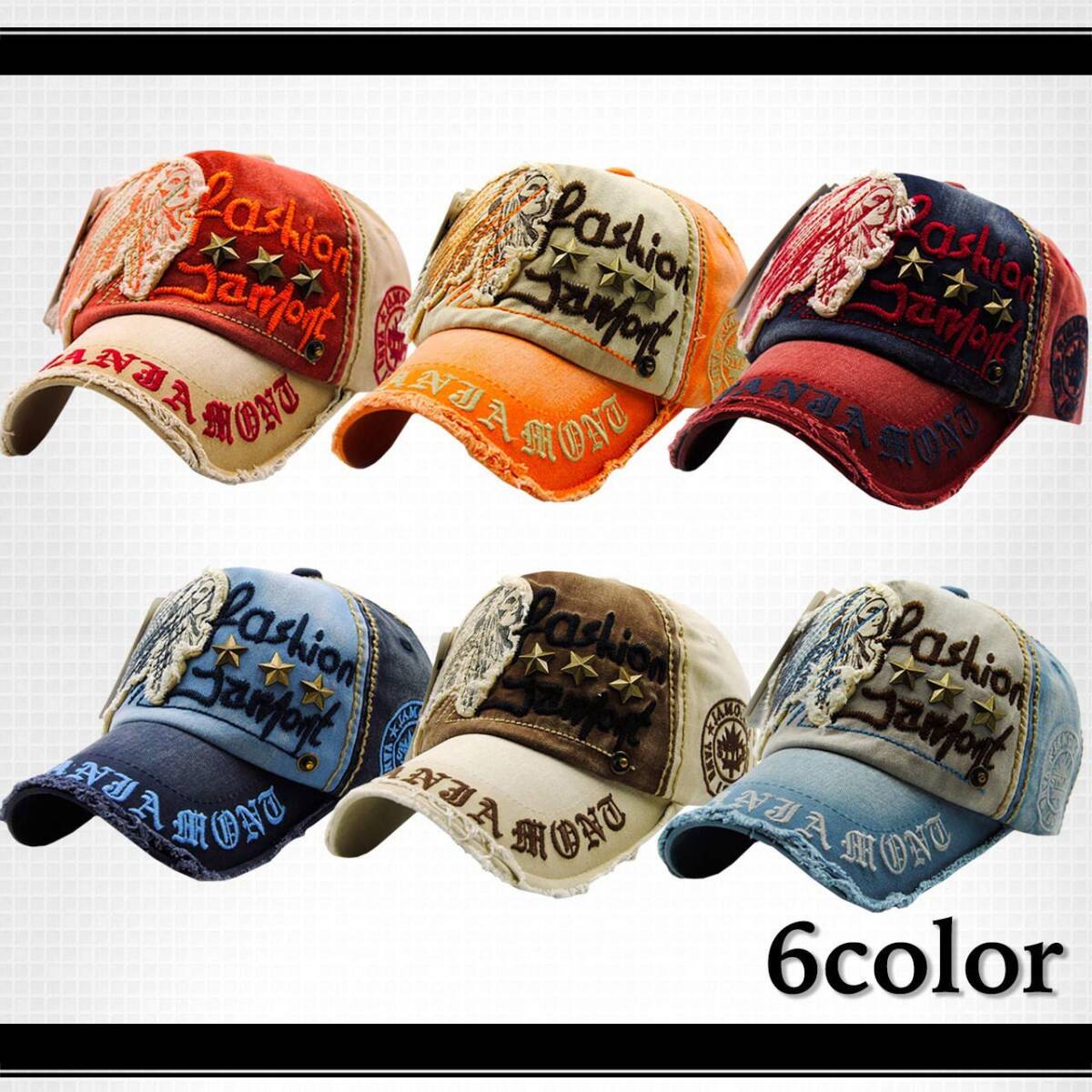 ダメージ加工を施し ヴィンテージ 感のある雰囲気に仕上げた おしゃれ で かっこいい メンズ キャップ !大きなワッペン 刺繍加工 スタッズ 加工が散りばめられた 王道 アメカジ デザイン