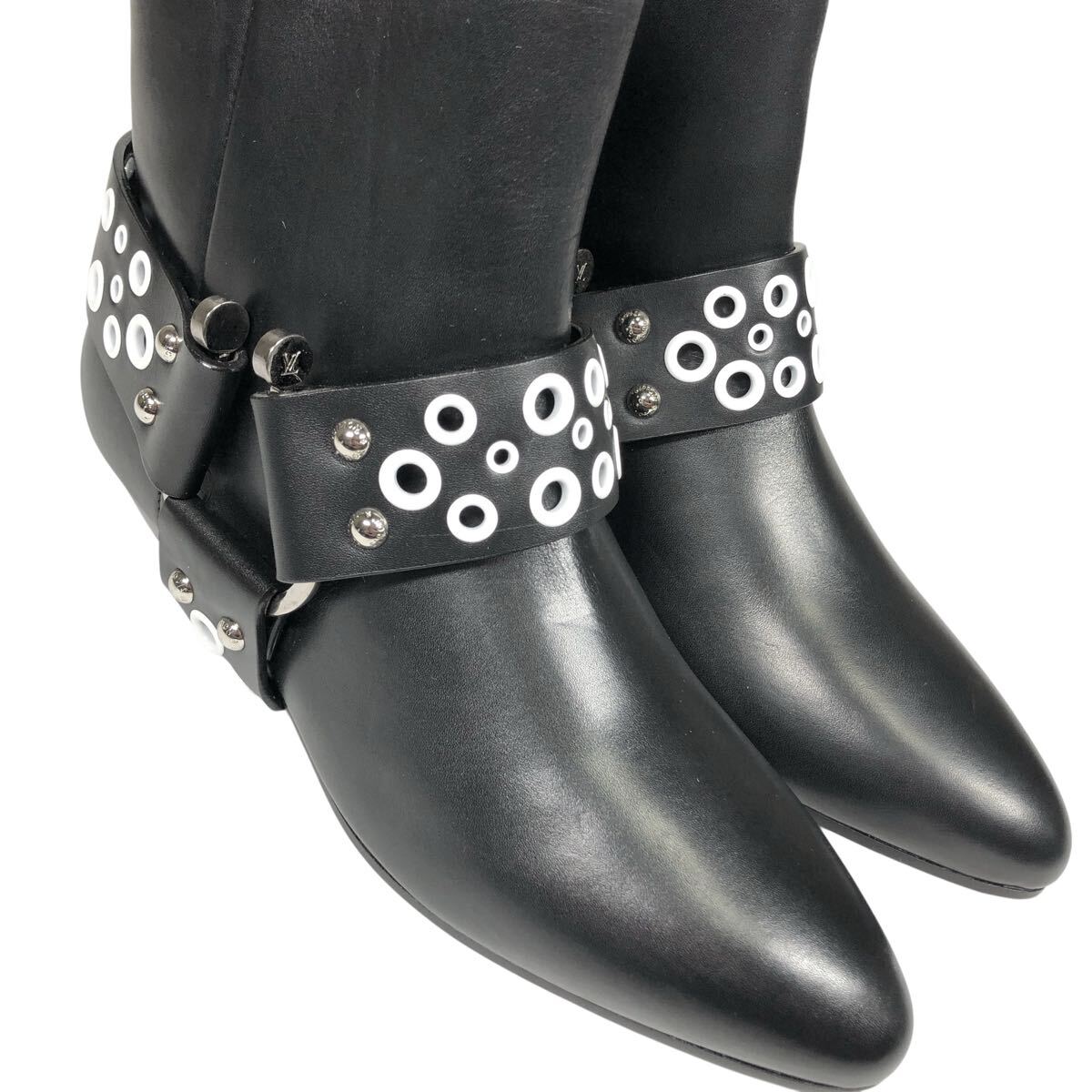 未使用品【ルイヴィトン】本物 LOUIS VUITTON 靴 23cm ラプソディライン モノグラム ショートブーツ シューズ レザー レディース 伊製 36