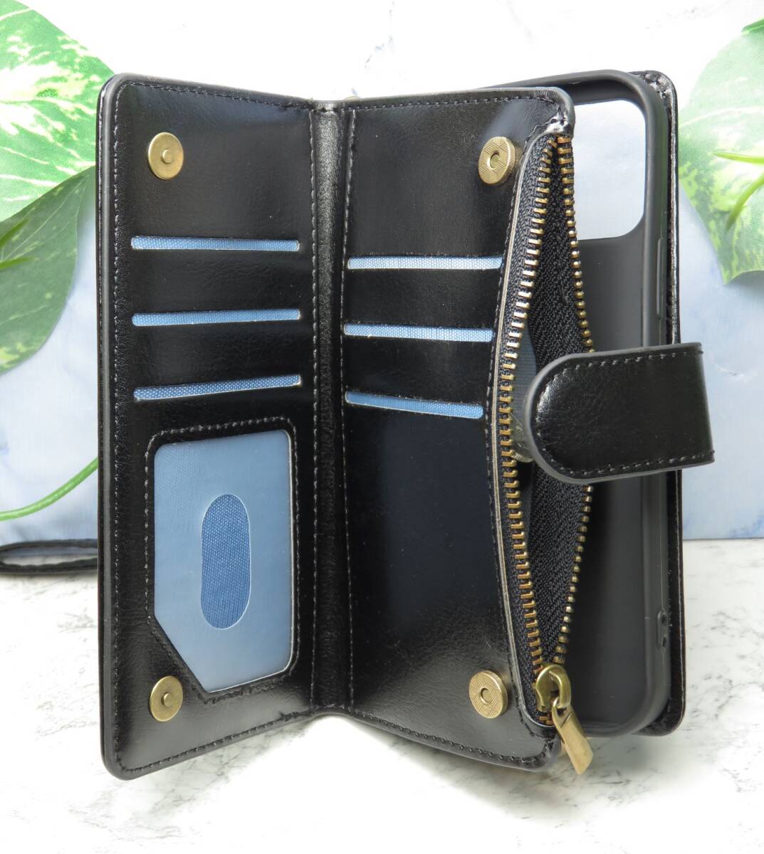 iPhone 14(ProMax)用財布手帳型ケース。カード入れ、iPhoneケース、お財布の3つの機能がセットになったiPhoneケースはマグネット式なので、iPhone外さずに写真撮れます。