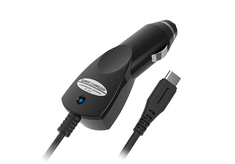 ●車のDCソケット電源からスマートフォンのバッテリーを充電する、USB Type-C端子専用のハイパワーDC充電器。