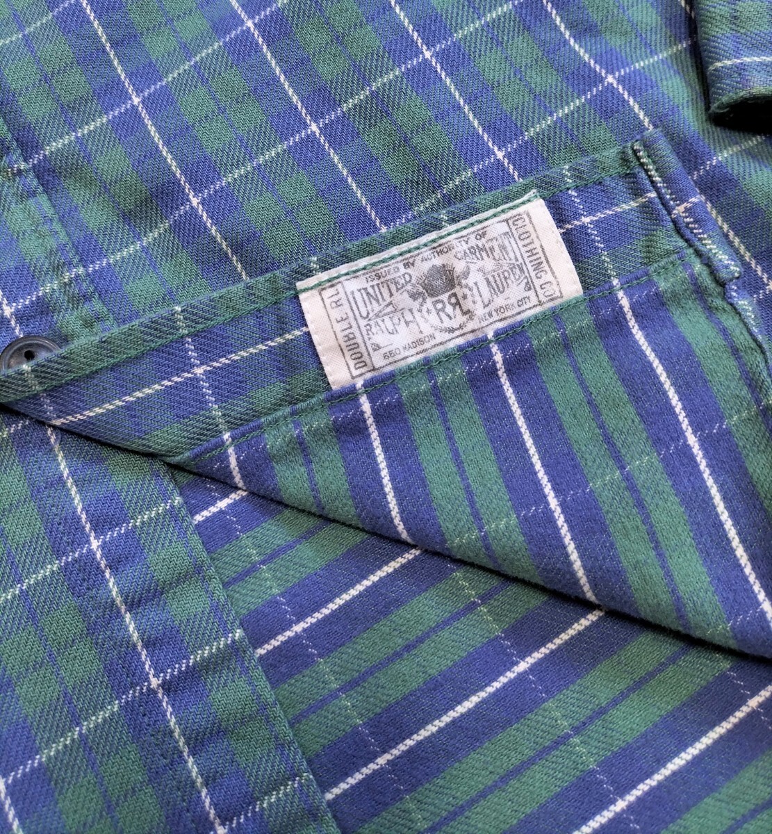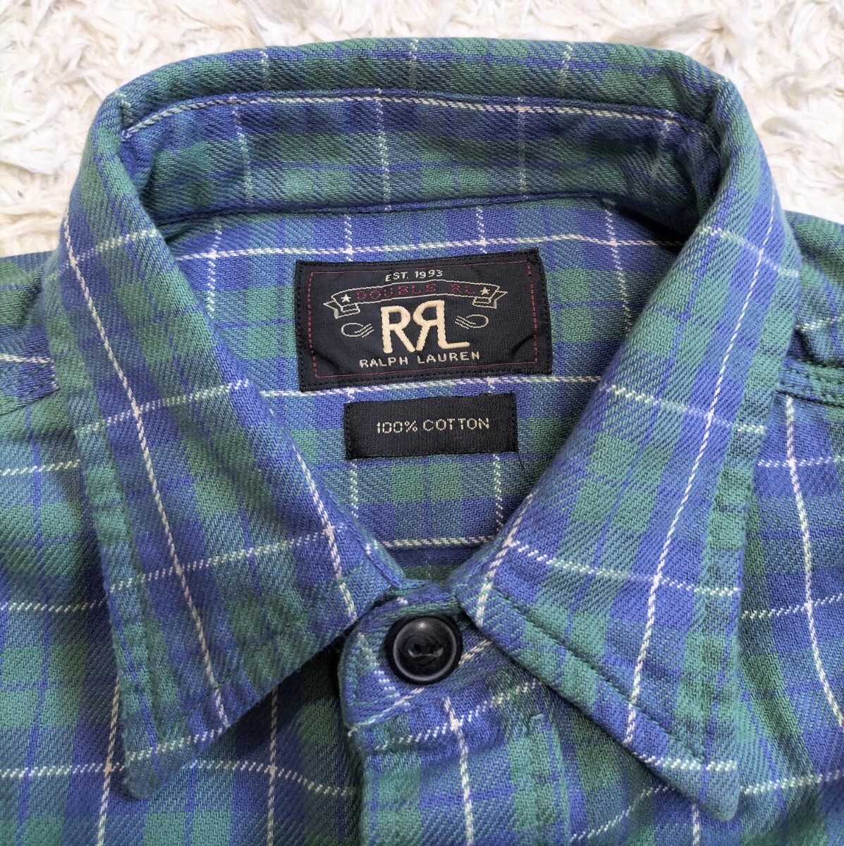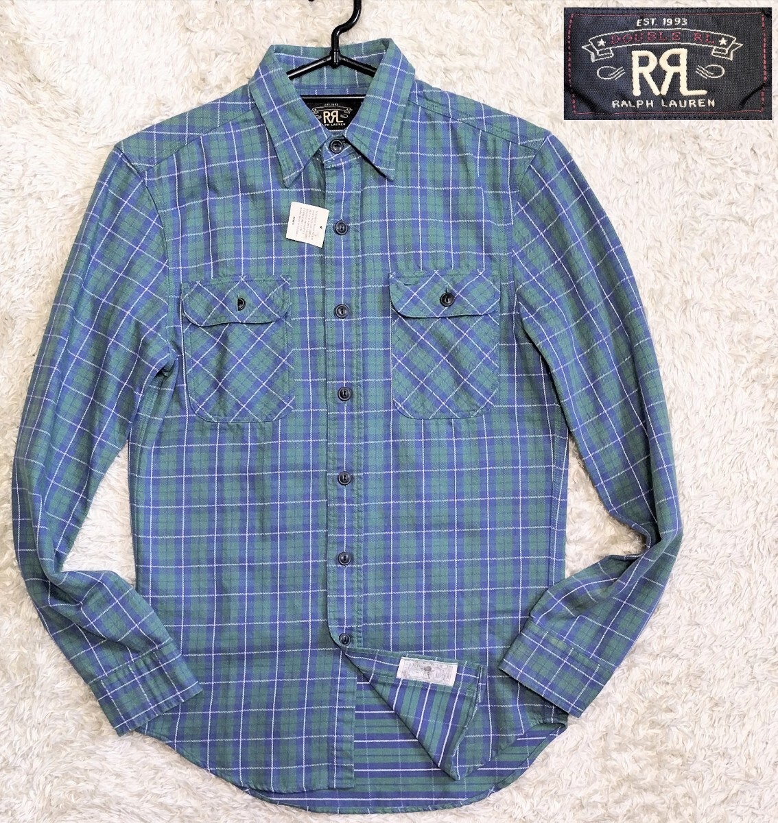 【未使用★ユニオンチケット付き】XS(表記より大きめの作り) RRL 長袖チェックネルシャツ●青緑☆ダブルアールエル (8101)