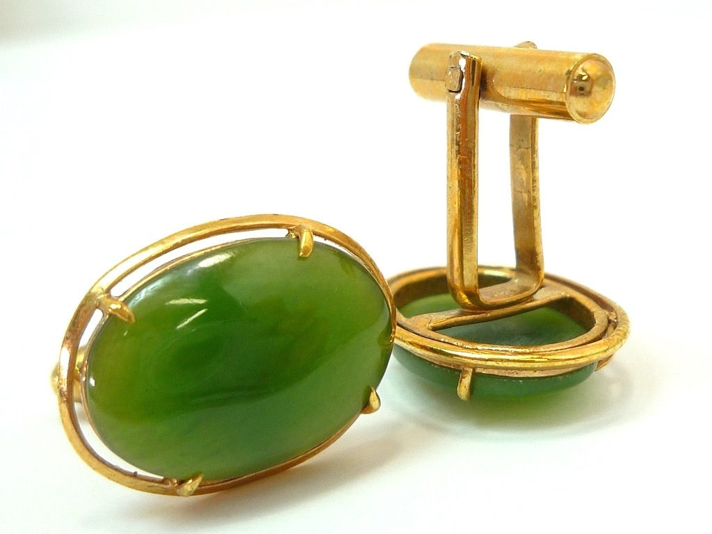 翡翠 ヒスイ&18K 18金 カフス タイピン セット ケース付 刻印 カフリンクス 高級感 豪華 運気UP 繁栄 長寿 幸福 紳士 ギフト 美品 注目 になります。画像のものが全てです。