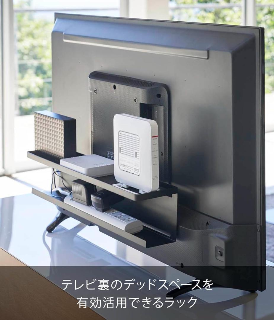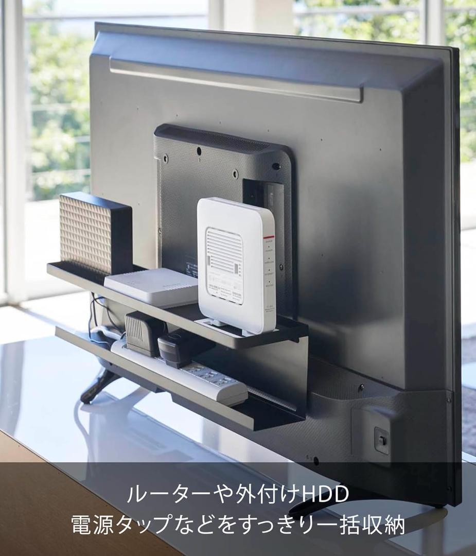山崎実業(Yamazaki) テレビ裏収納ラック ブラック 約W57×D11×H12.5cm スマート テレビ裏 ルーター収納 収納棚 本体・取説・元箱となります。