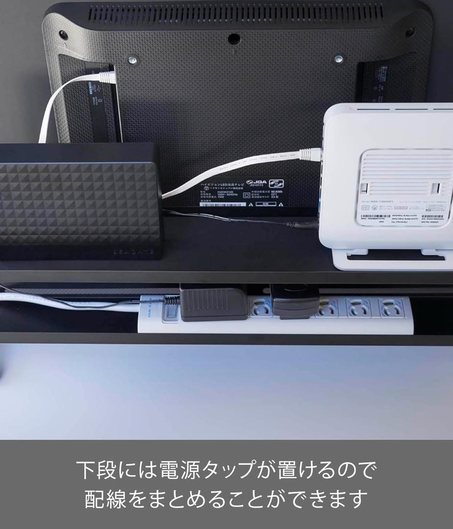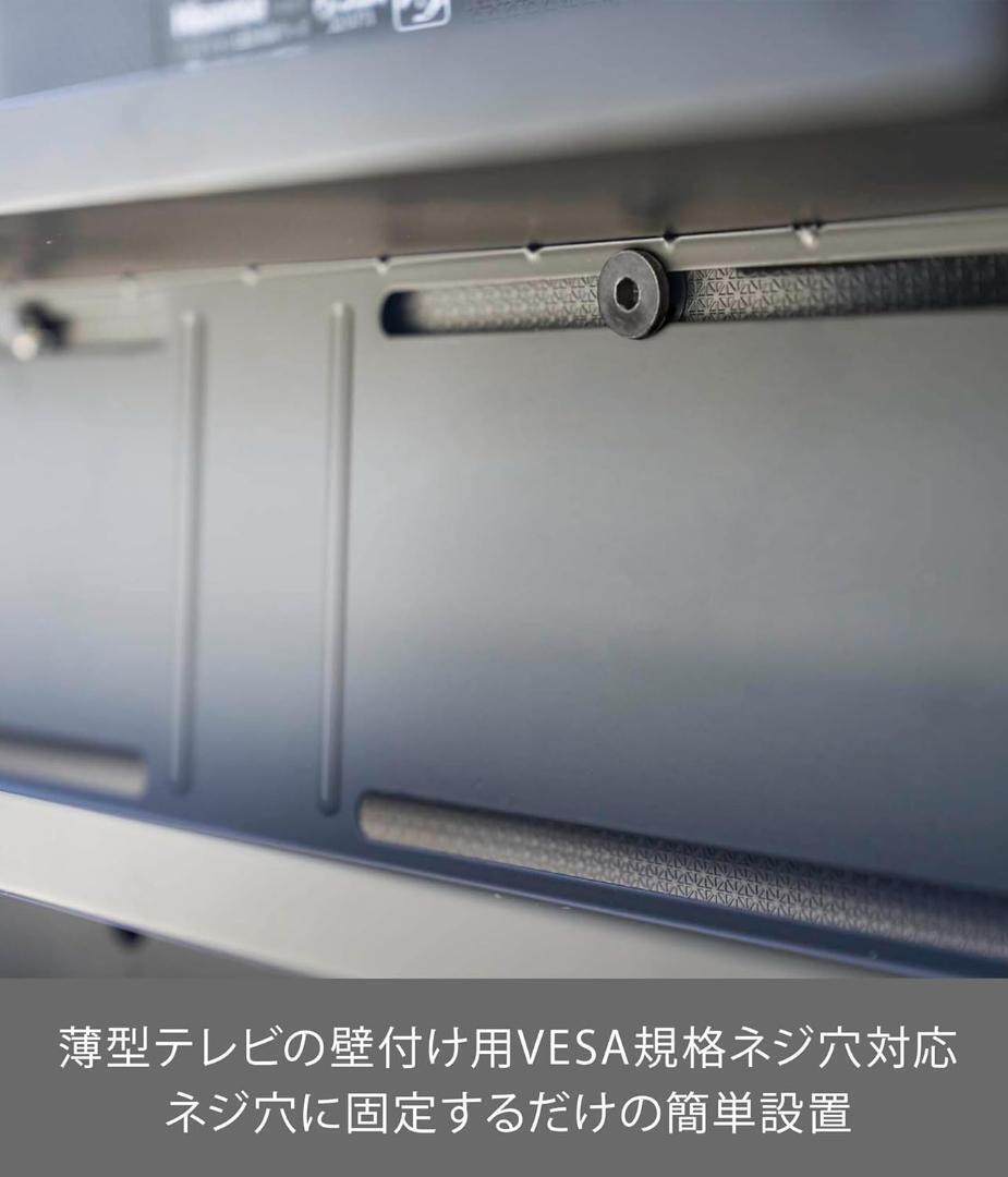 サイズ:約W57XD11XH12.5cm 品質表示:本体 : スチール(粉体塗装) マット : シリコーン 生産国:中国 耐荷重:上段 : 約1kg 下段 : 約500g 対応サイズ:テレビ背面(裏面)のネジ穴の横の間隔:100mm以上、400mm以内 ※取り付け位置によって異なります。 VESA規格対応の40インチ以上のテレビに対応 付属品:ネジ大(M8)×2 ネジ小(M6)×2 ネジ小用ワッシャー×2 六角レンチ×1 内寸:上段 : 約W56.5×D10.5cm 下段 : 約W57×D8×H10.5cm ※設置場所の寸法を測り、ご注文の商品が設置可能かどうかご確認の上ご注文ください。