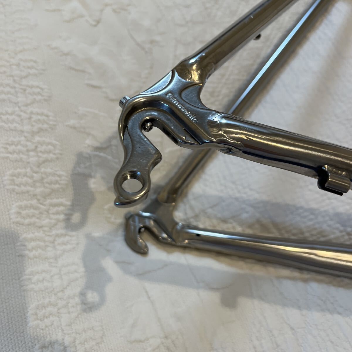 2008年夏に輪行ツーリング用に105コンポで購入し、その後、アマチュア大会に出るためDURA-ACEで500km程度乗りました。その後、多忙でほとんど自転車に乗らなくなりフレームだけ保管していましたが、荷物整理のため出品します。