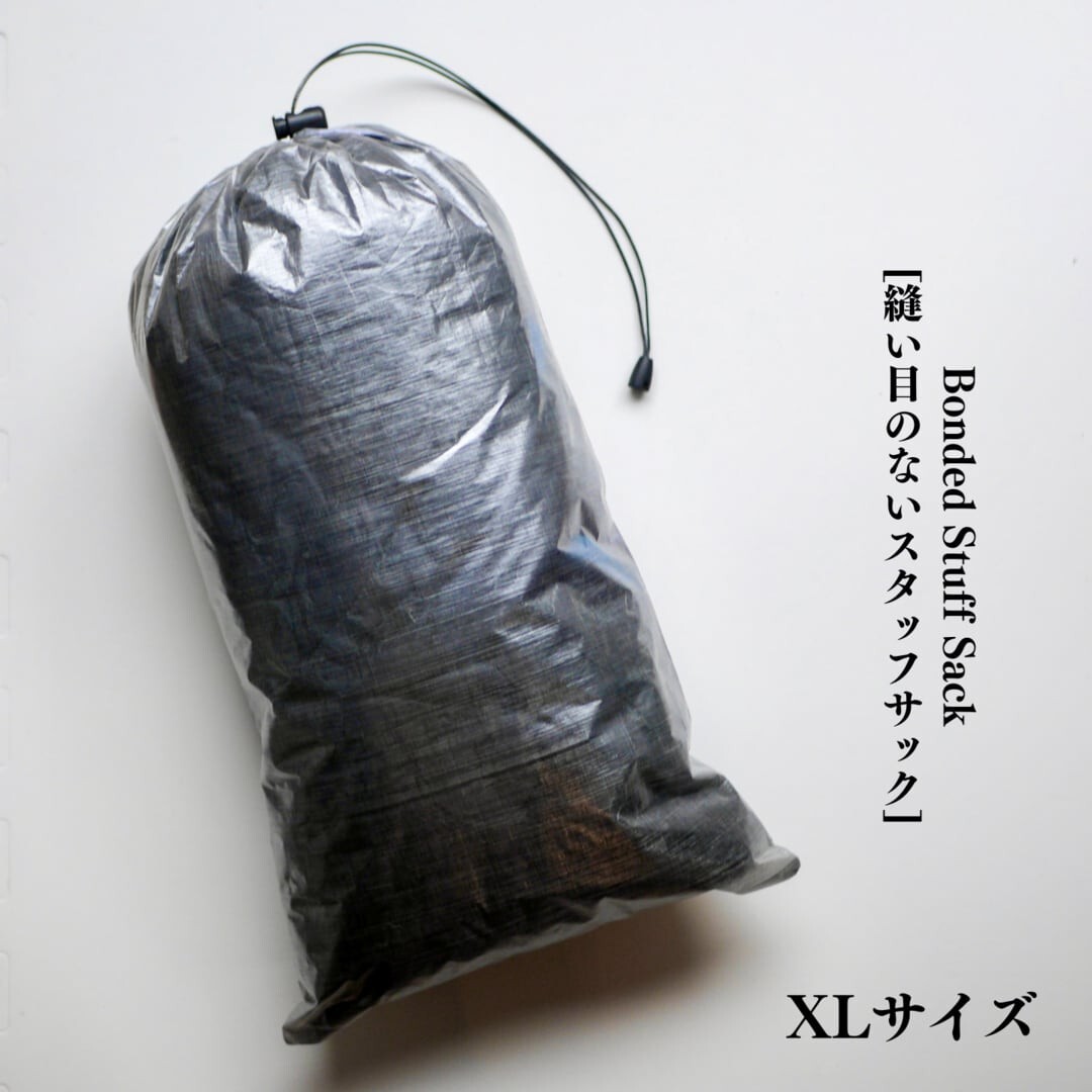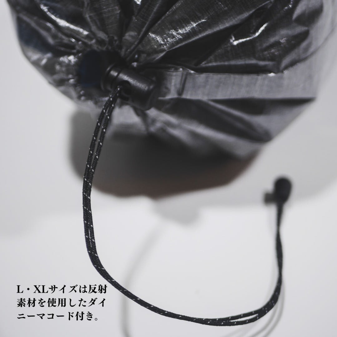 ミシンで縫うのではなく、ボンディング圧着しているため、糸の重ささえもカットし、軽さを追求したスタッフサックです。