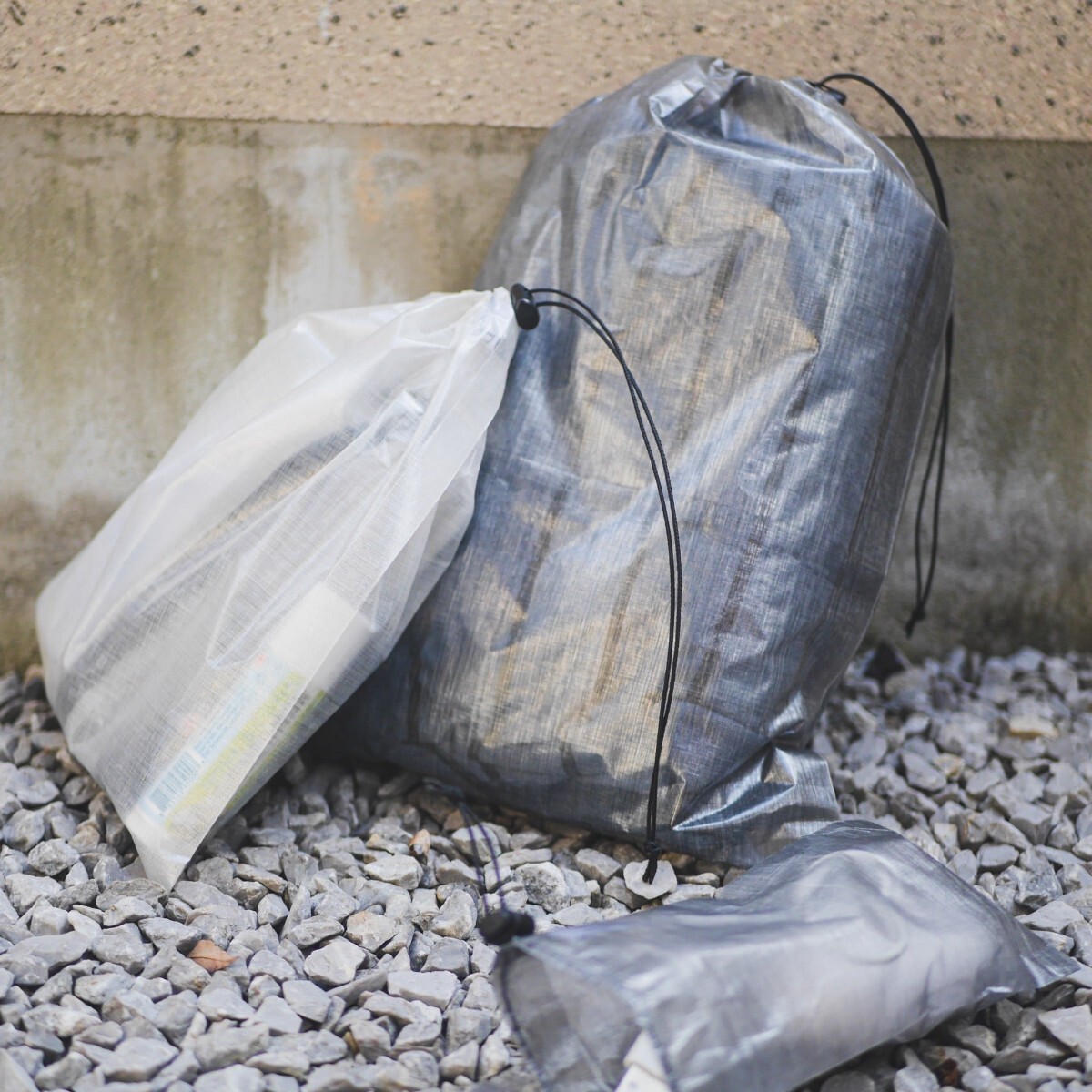 撥水、防水能力を持っているので、荷物をドライに保つ用途でしっかりと機能してくれますし、ワンタッチで開閉できるドローイングこそULスタイルのパッキングシステムです。