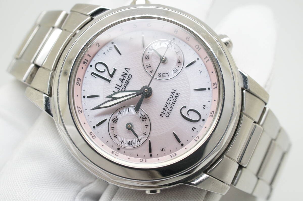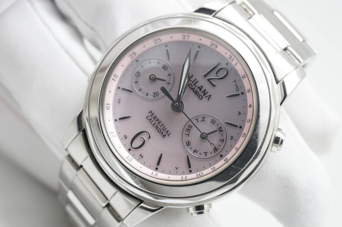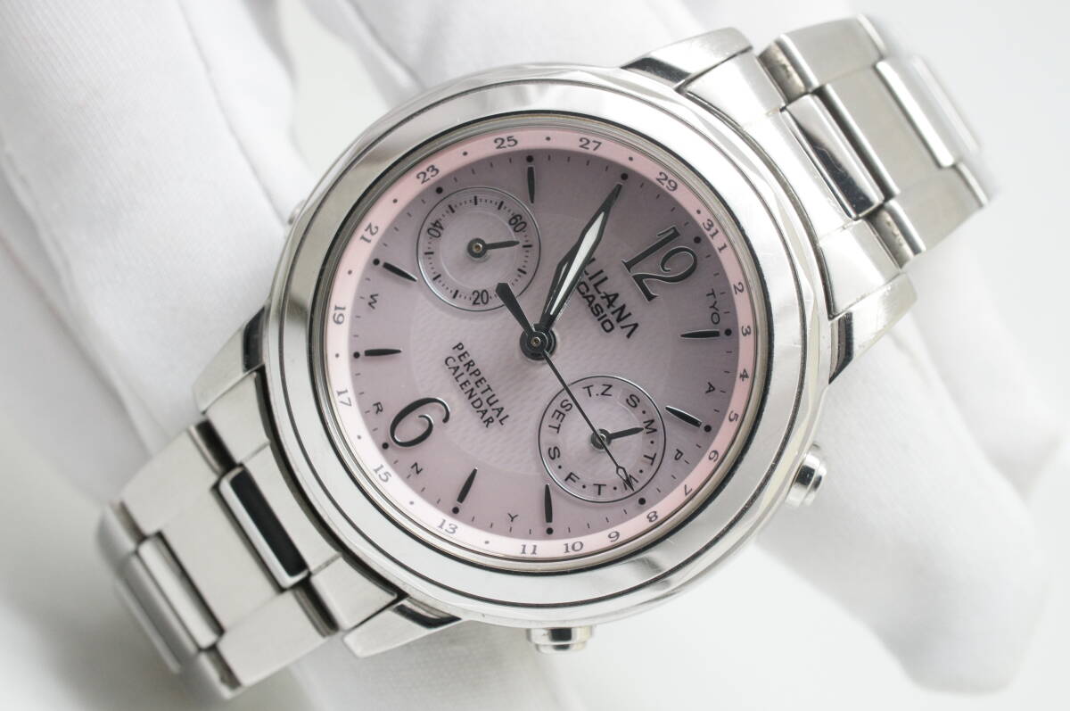 Z58●作動良好 CASIO カシオ LILANA リラーナ LNA-100 タフソーラー 電波ソーラー ピンク文字盤 レディース腕時計 シルバー
