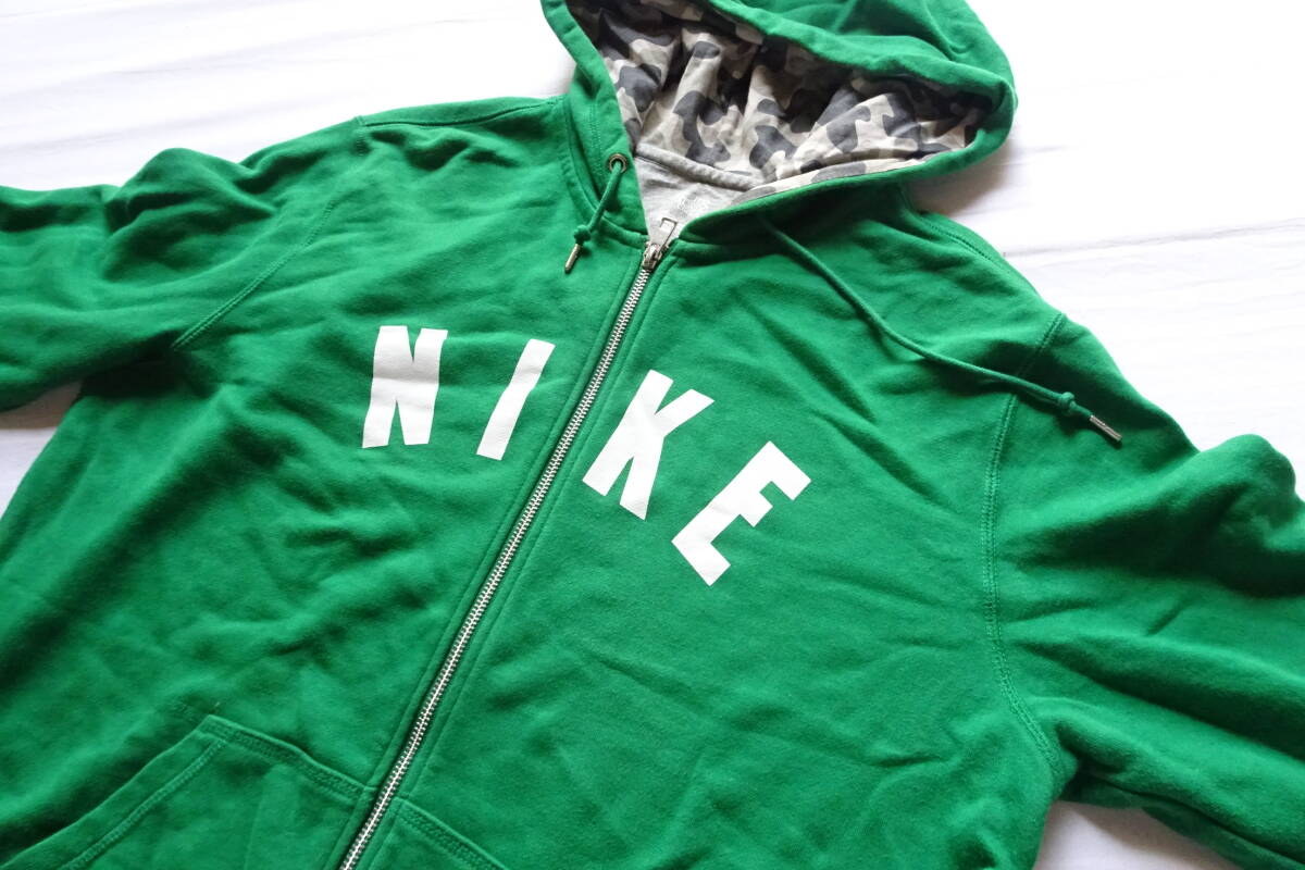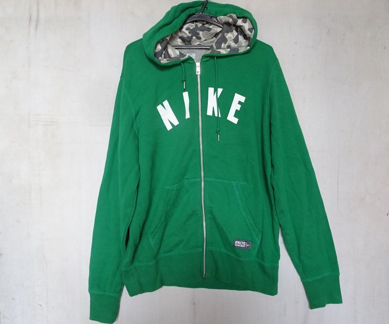 NIKE the athletic dept./ナイキ/長袖パーカ/スウェット素材/前ジップアップ/フード内側カモフラ柄/緑/グリーン/XXLサイズ(9/8R7)