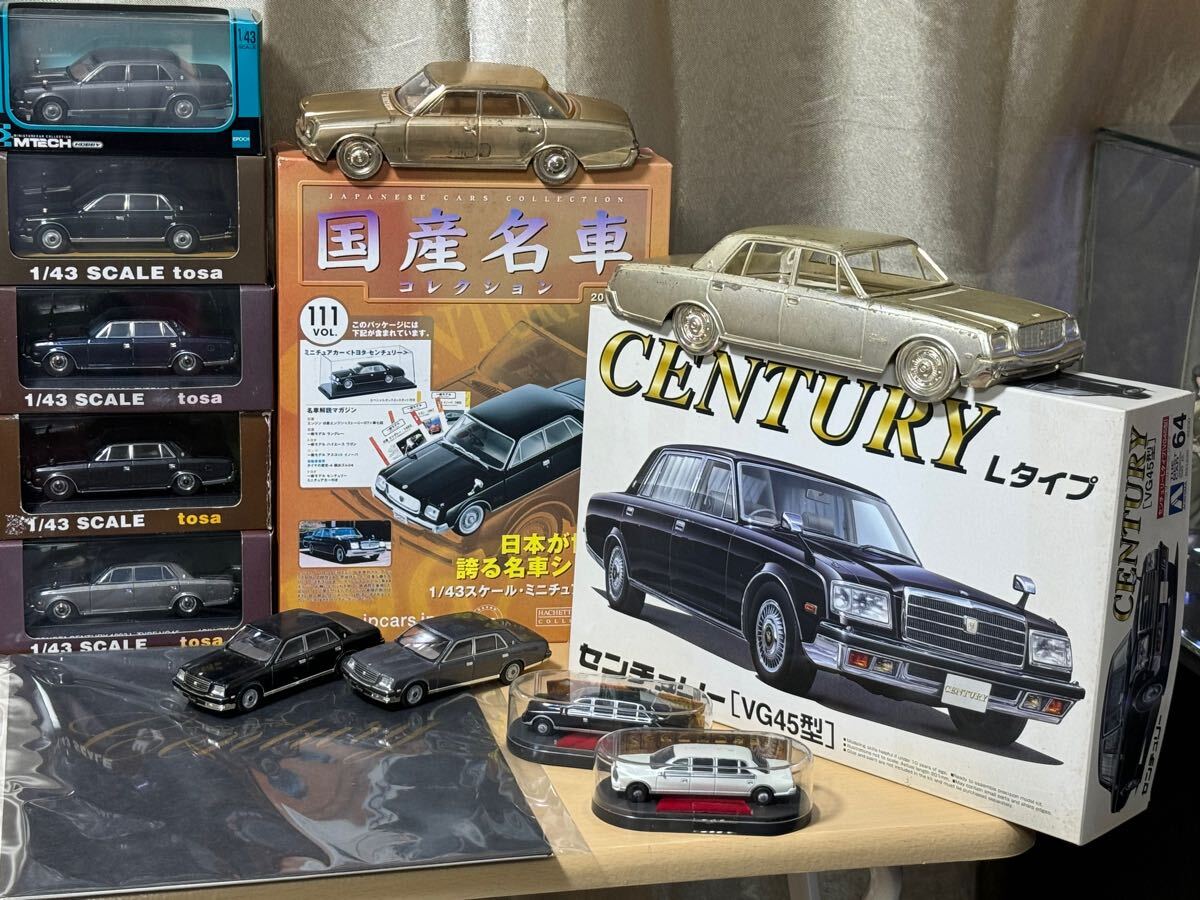 数年前からコレクションしたトヨタセンチュリーコレクションです。プラモデル ミニカー シガーレットケース