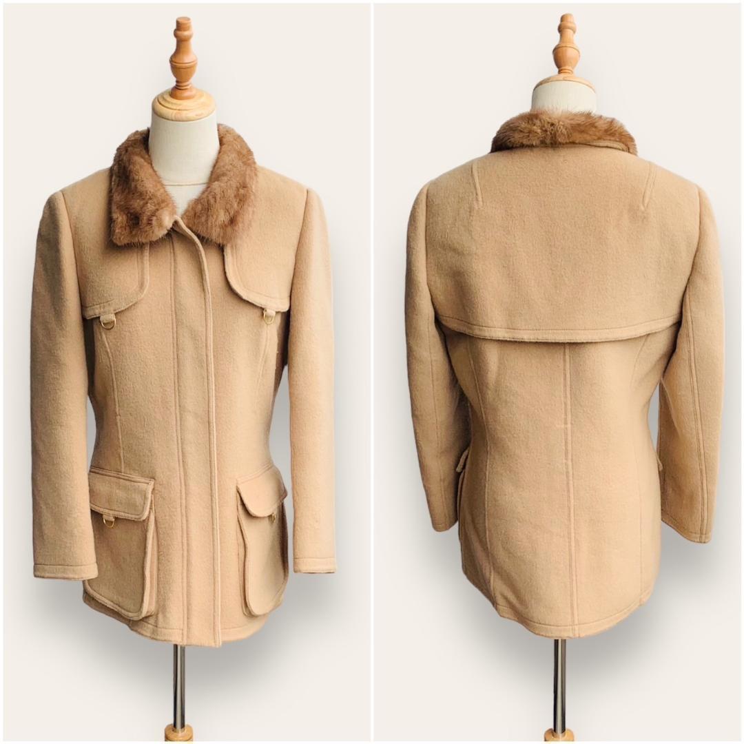 【リアルミンクファー使用】 437 伊太利屋 イタリヤ 激レア 高級素材 ウール ストーンジッパー ピーコート キャメル 9 Mサイズ相当