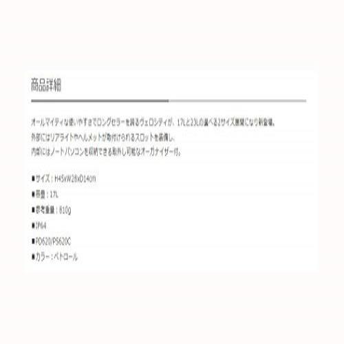 | ブランド:オルトリーブ(ORTLIEB) カラー:ペトロール サイズ:H45xW28xD14cm オールマイティな使いやすさでロングセラーを誇るヴェロシティが、17Lと23Lの選べる2サイズ展開になり新登場。 カラーもコーラルとペトロールが新たに加わりました。外部にはリアライトやヘルメットが取付けられるスロットを装備し、内部にはノートパソコンを収納できる取外し可能なオーガナイザー付。 サイズ:H45xW28xD14cm 容量:17L カラー:ペトロール 重量:810g 対象シーズン:通年 | |||