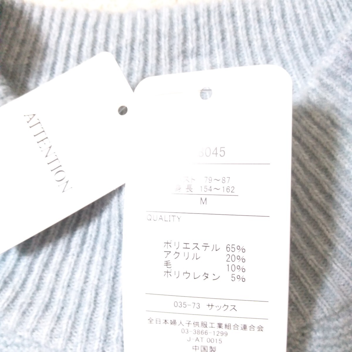 色は水色、サイズM、着丈77cm、横幅55cm。