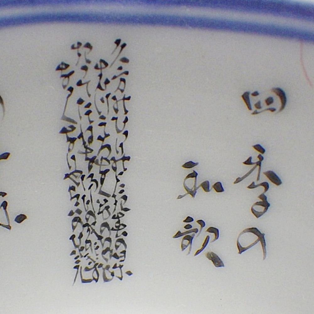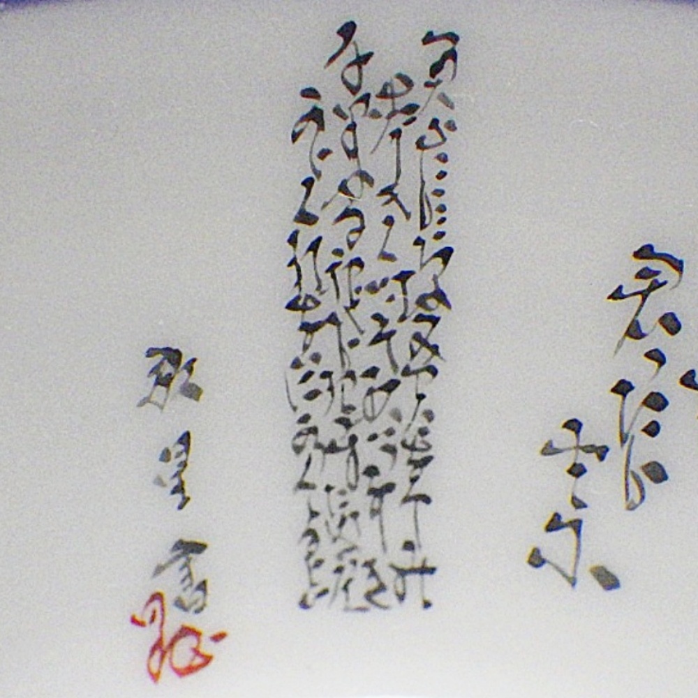 B25-312 九谷焼 田村敬星 毛筆細字 ぐい呑み 盃 松 竹 梅 酒器 四季の和歌 陶磁器 伝統工芸 KUTANI 共箱/布/陶歴付