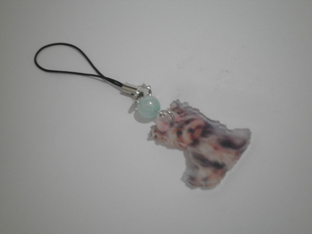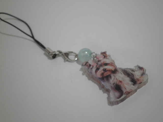 サイズ2.3X3cmの、「ヨークシャテリア」のアクリルパーツで、ストラップを作りました。