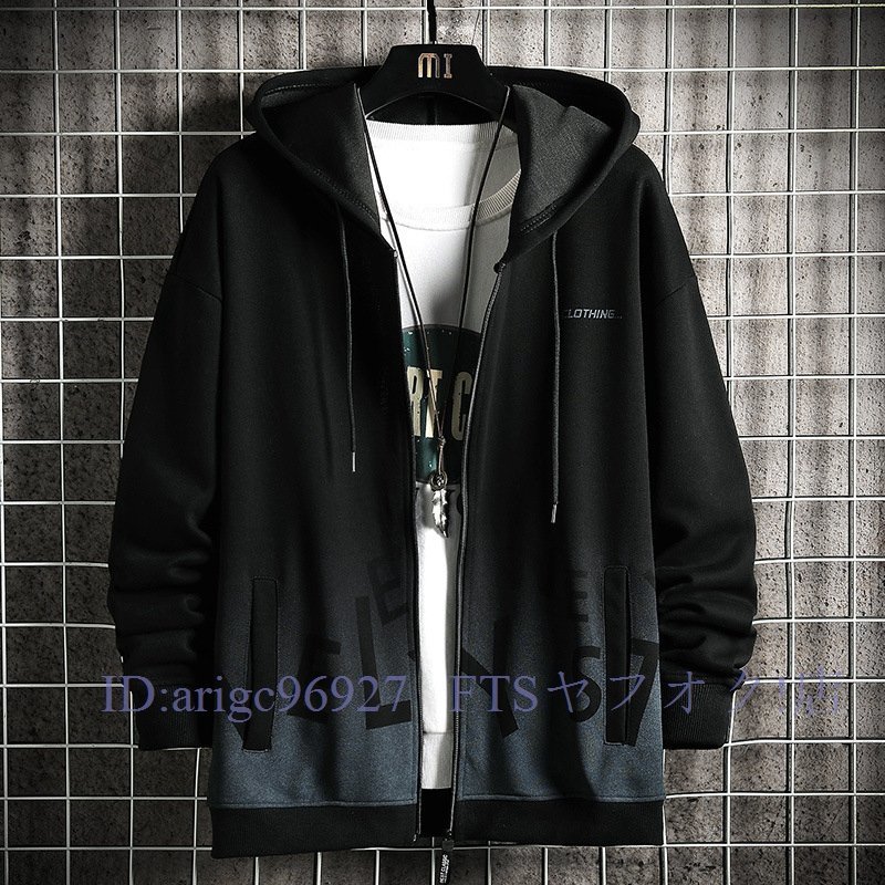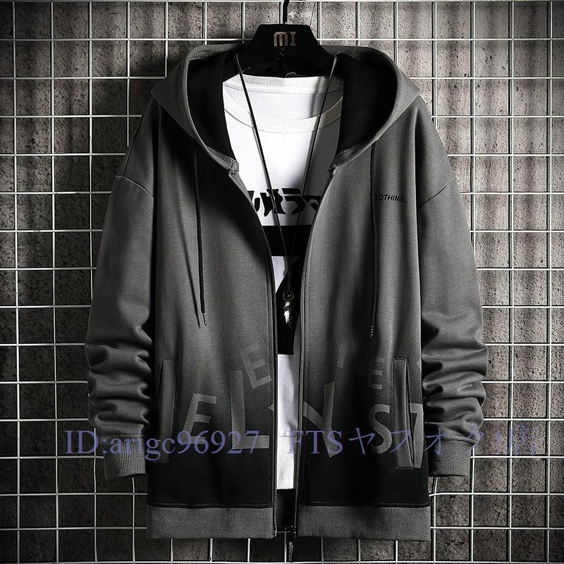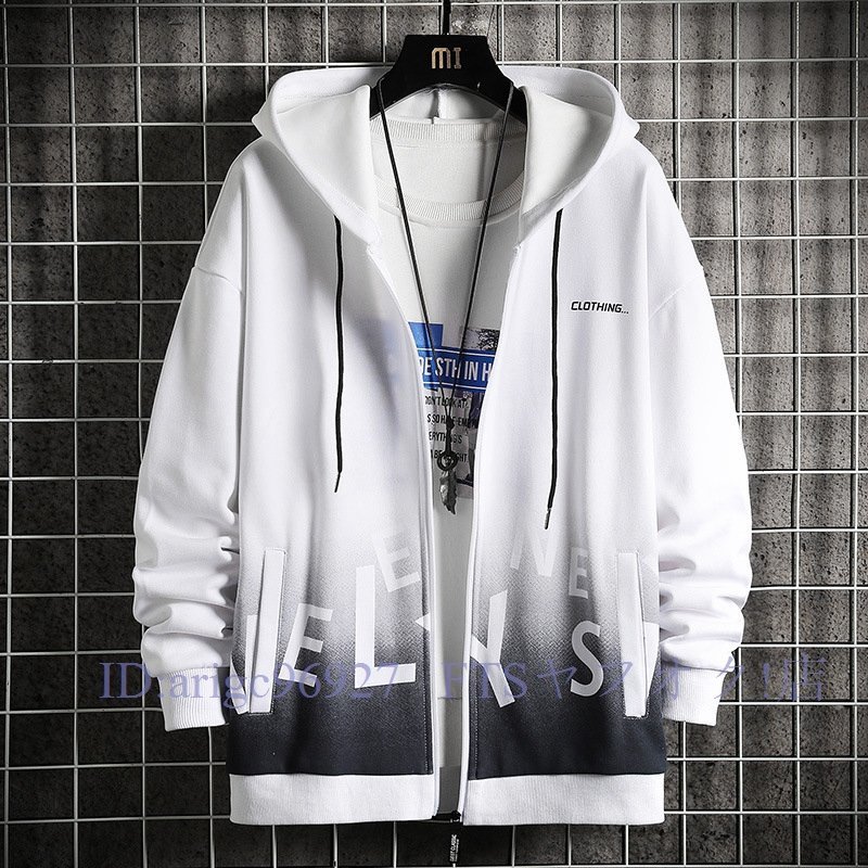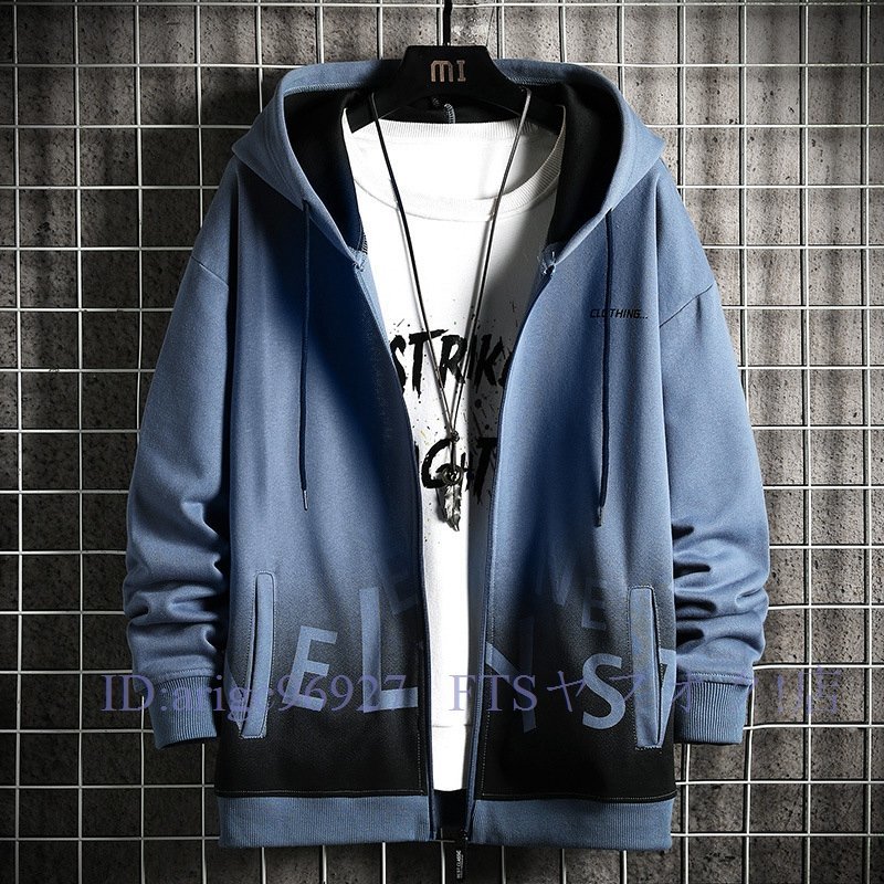 A5442☆新品大人気 秋物 ジップアップパーカー メンズ パーカー トップス きれいめ ロゴ 長袖 グラデーション ブルー M~4XLサイズ選択