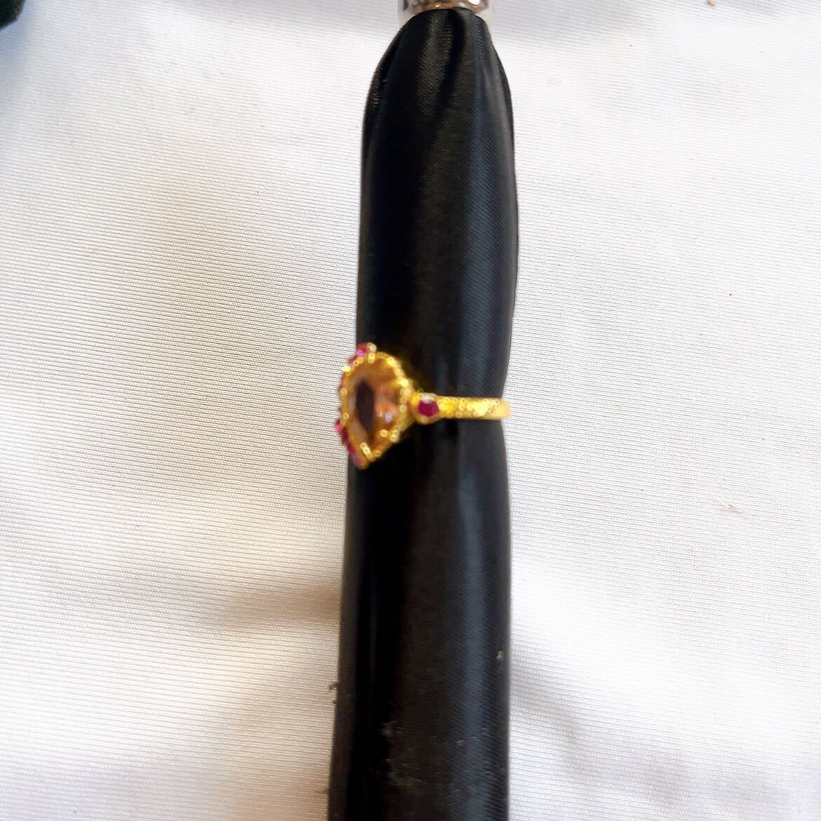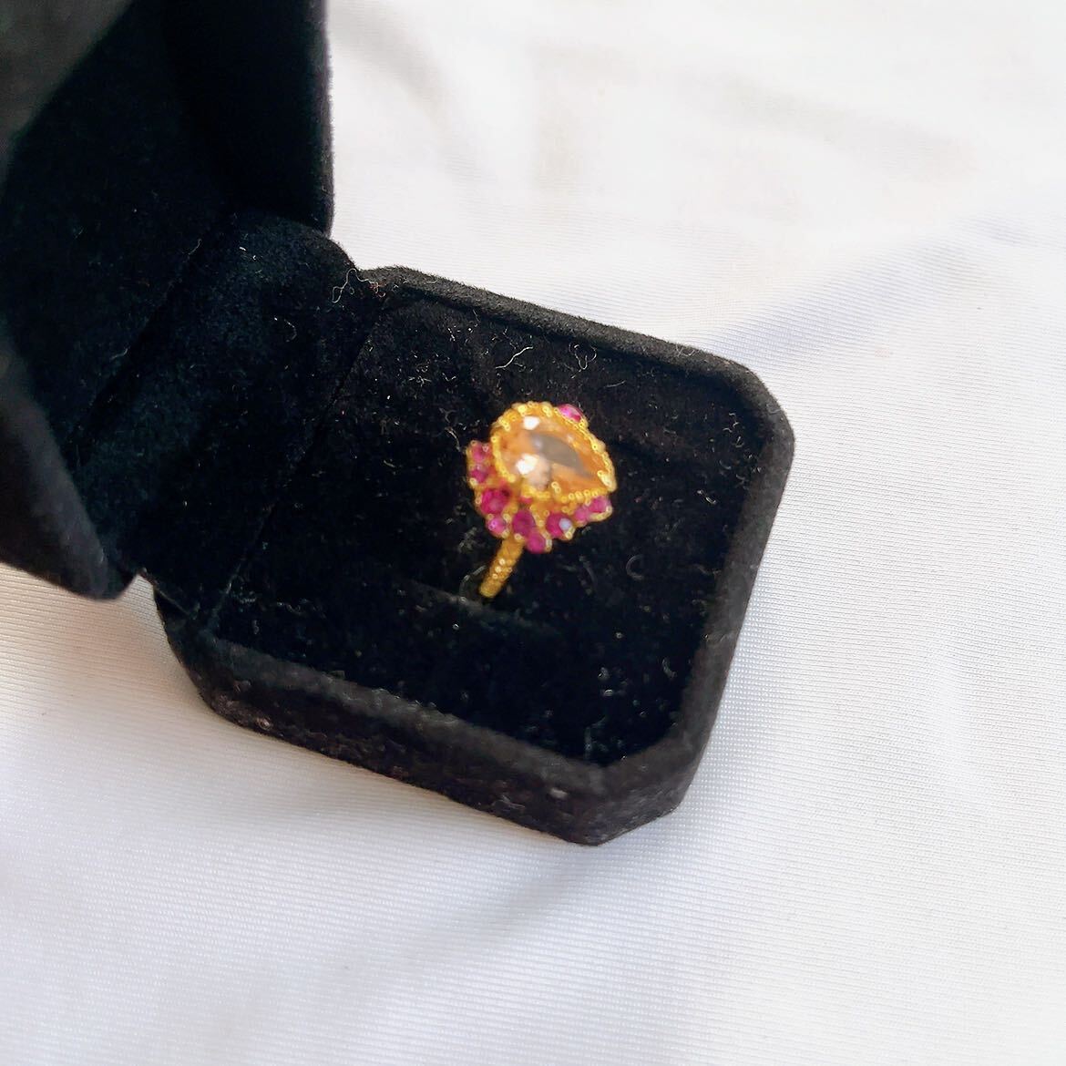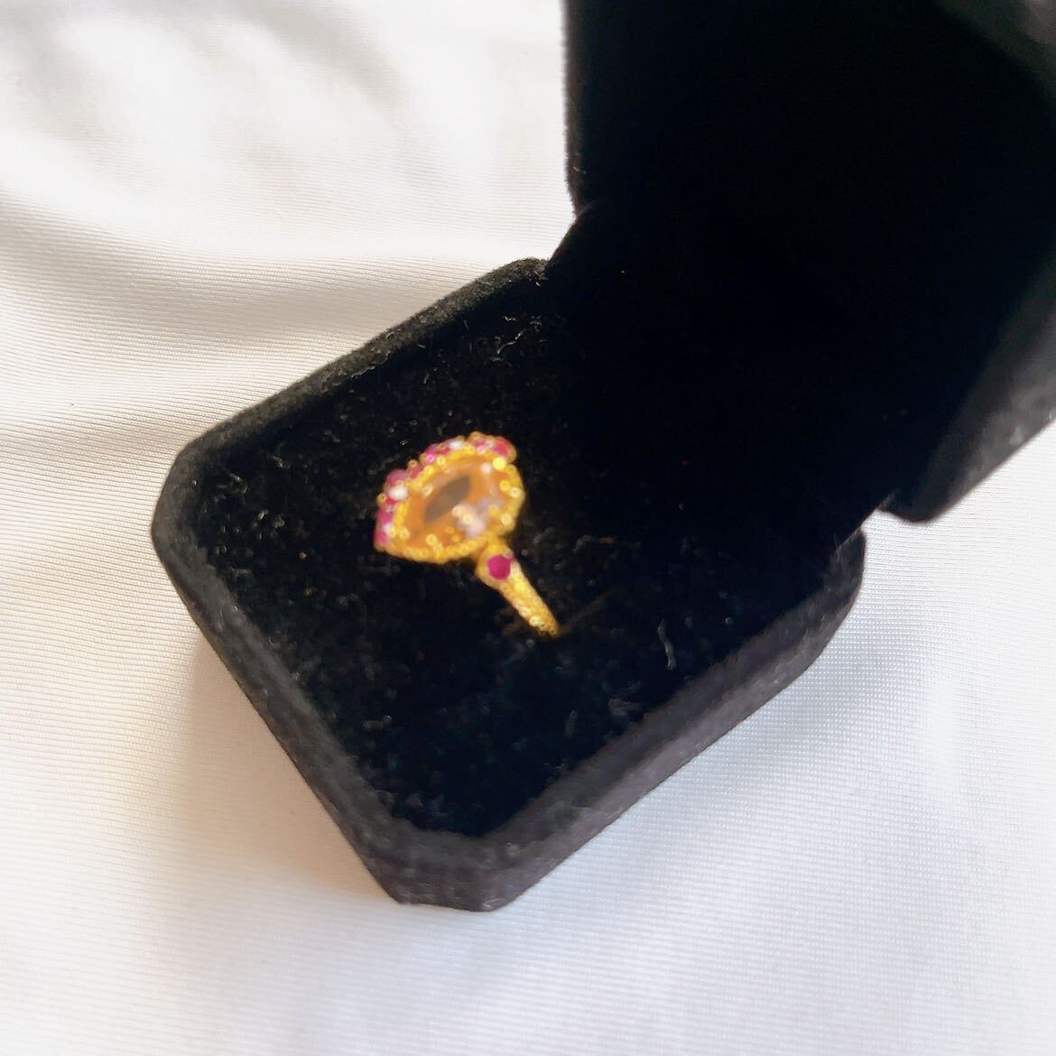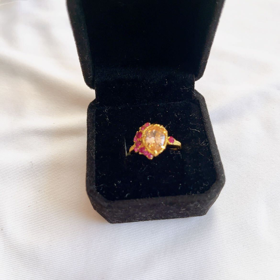 【商品名】新品★ゴールド★オレンジストーン風★レッドストーンデザインリング★指輪★10号
