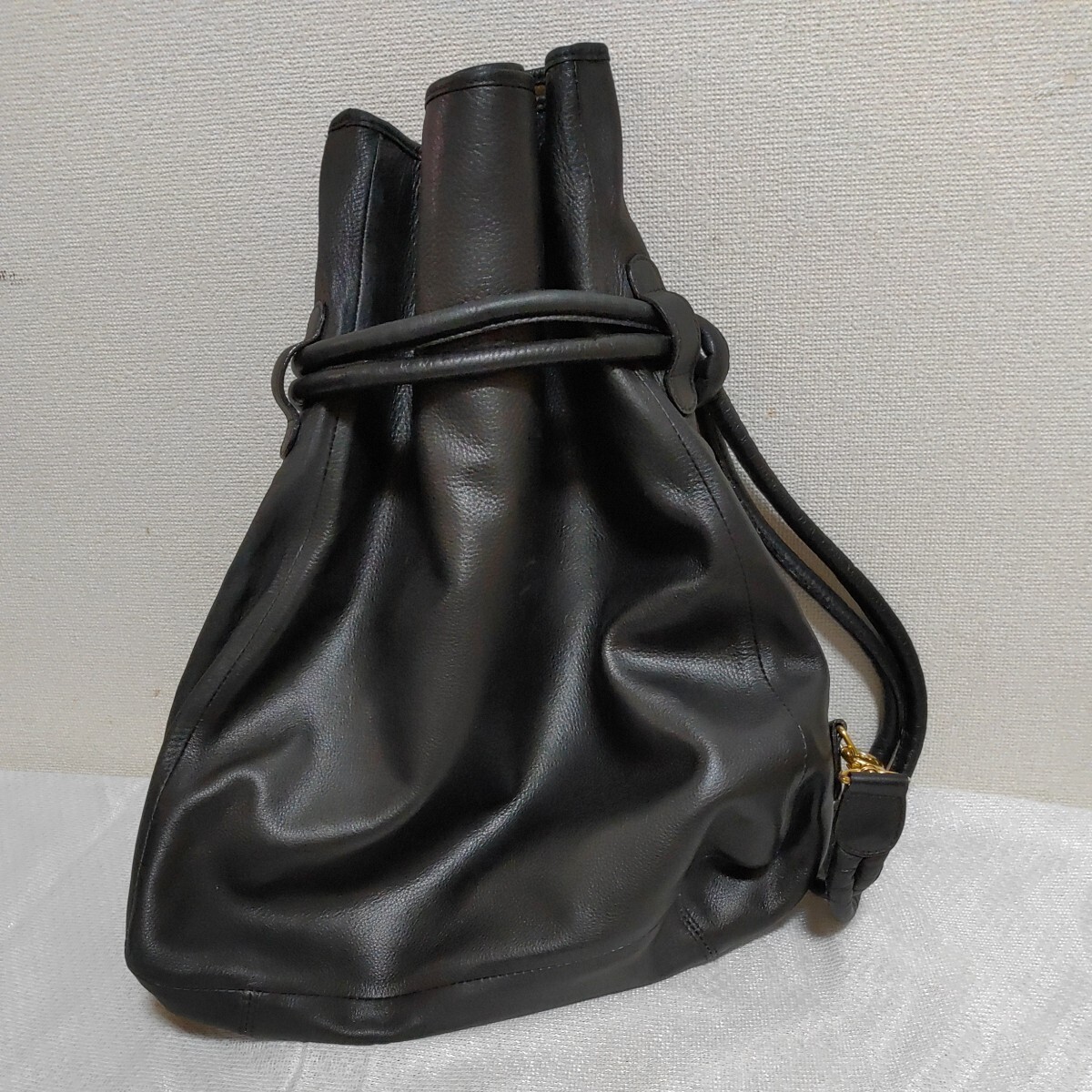 【美品】レディースバッグ 黒 ブラック ショルダーバッグ きんちゃく型 リバーシブル 巾着型 レオパード柄 ヒョウ柄 0318-B1-SA4