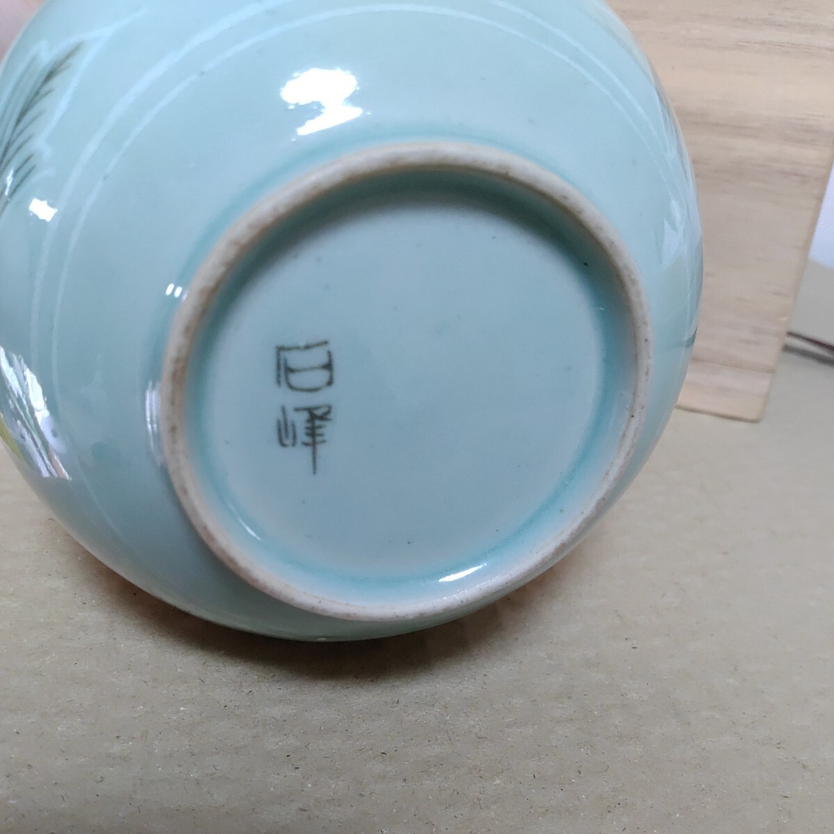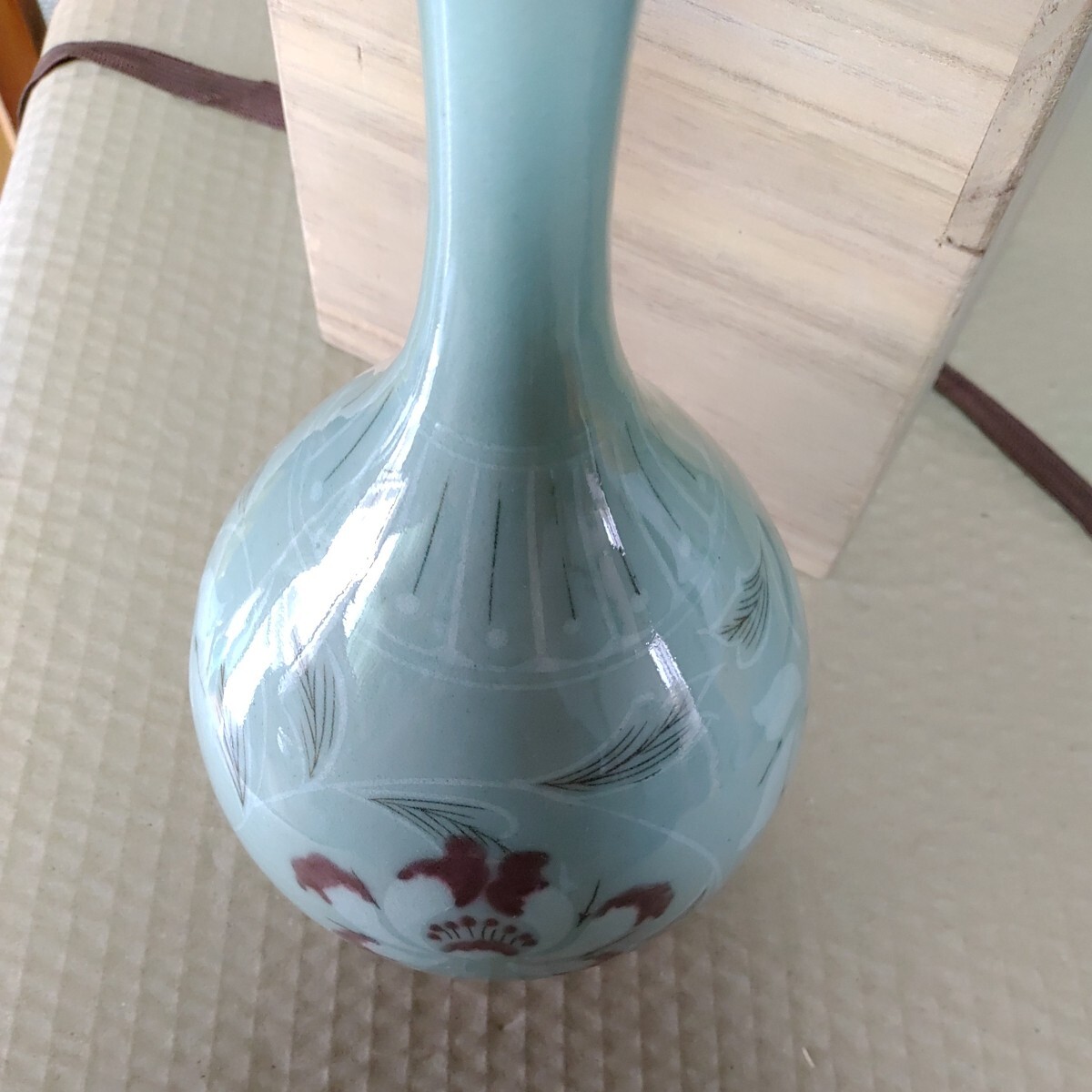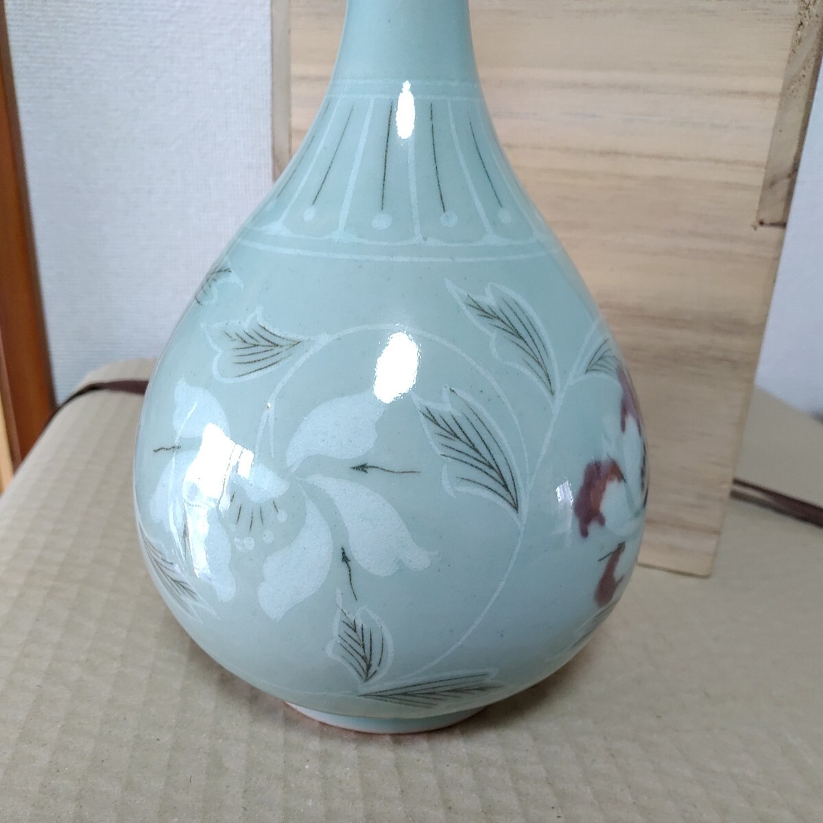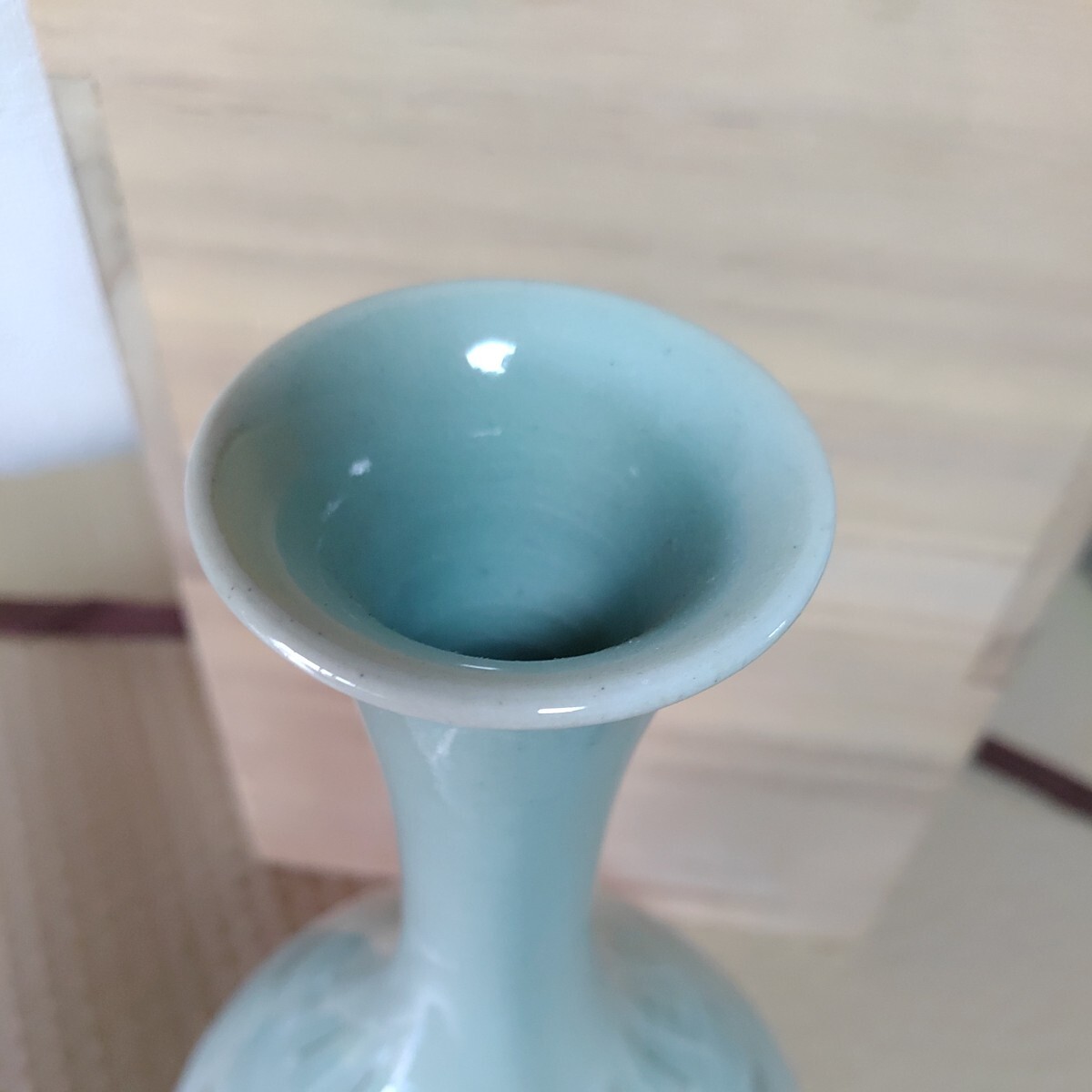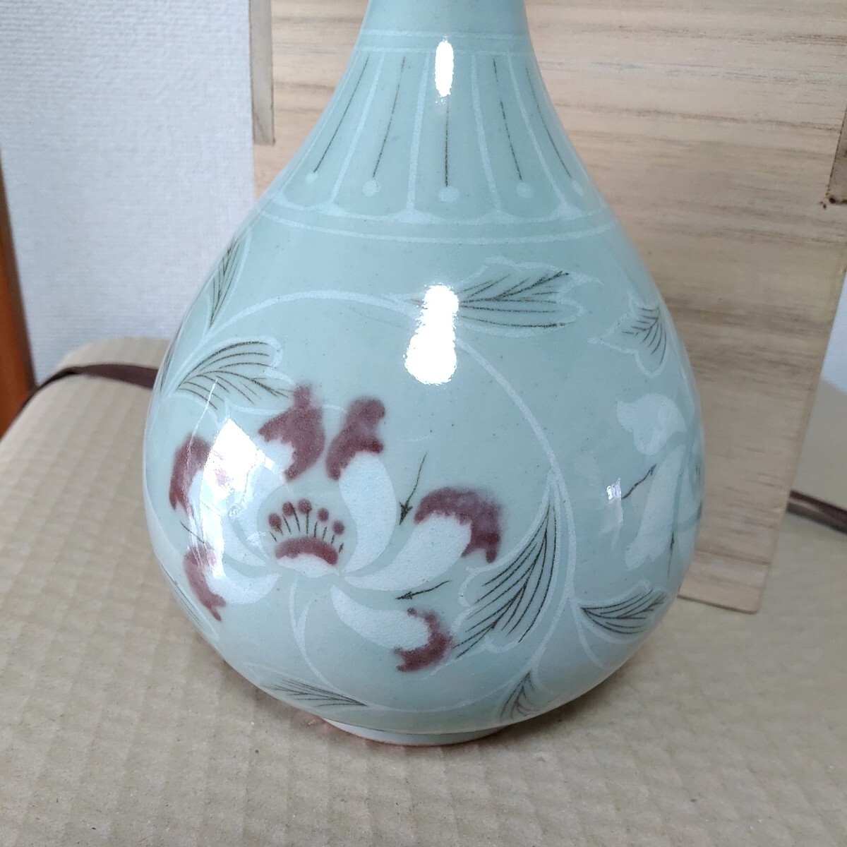 石峰作 酒瓶 高麗青磁  陶器  韓国青磁 花瓶 水差し  花器 一輪挿し 美術品 美品 1981 韓国工芸 朝鮮 0430-C3-TA7