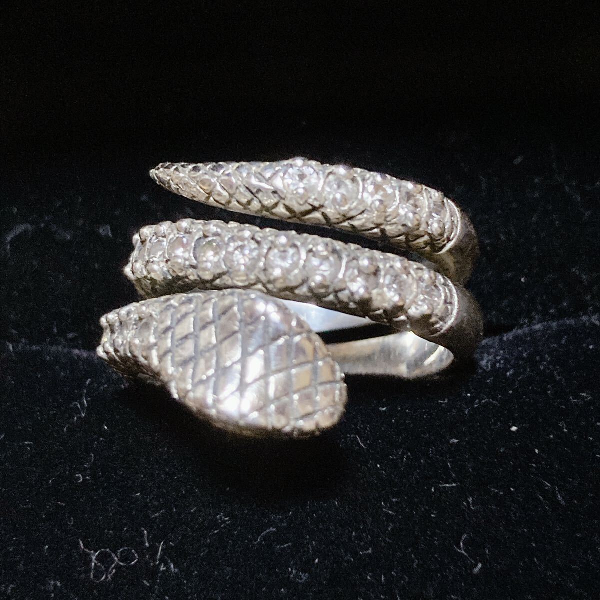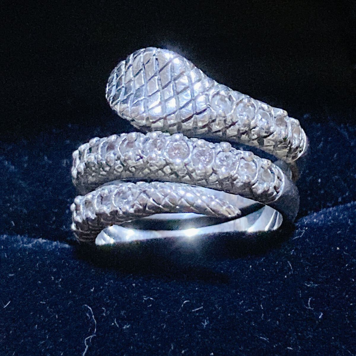 胴にびっしりと敷かれたクリアカラー高品質ジルコニアが目を引くアイテムです。