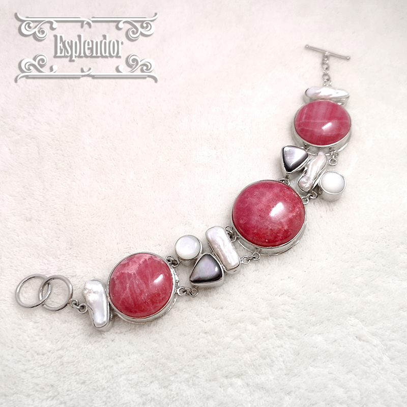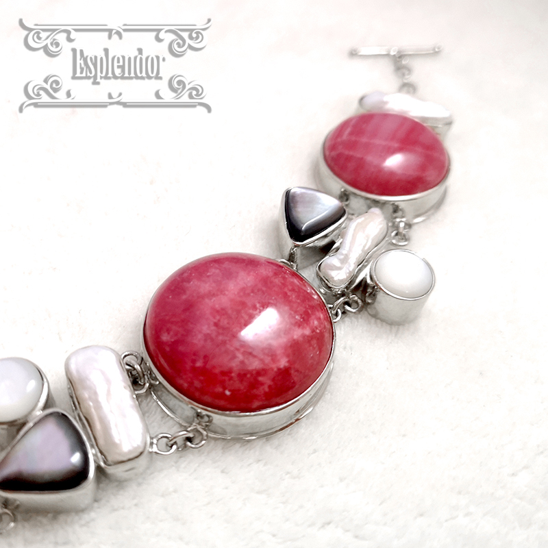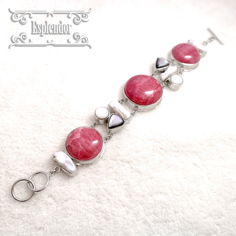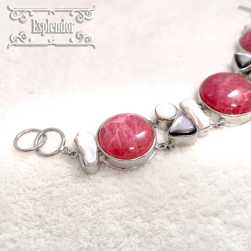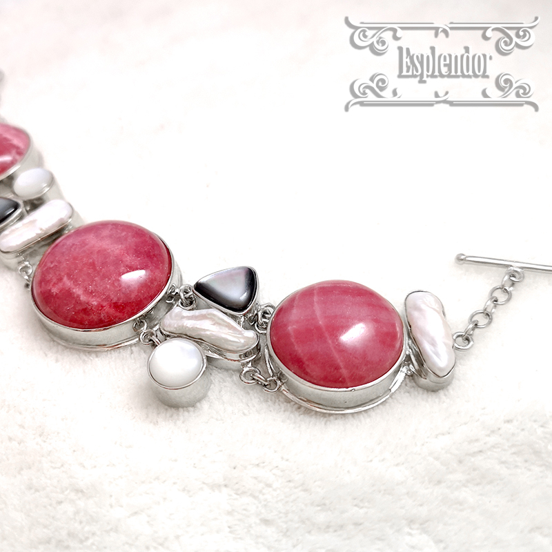 アルゼンチン産・高品質インカローズ(ロードクロサイト)& シェル ブレスレット II | |||