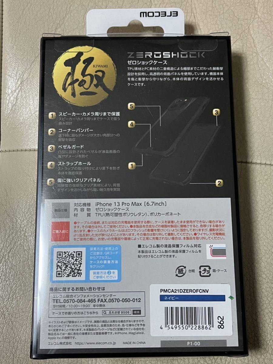 エレコム iPhone 13 Pro Max ハイブリッドケース ZEROSHOCK フレームカラー 極ミ 極限保護 ネイビー