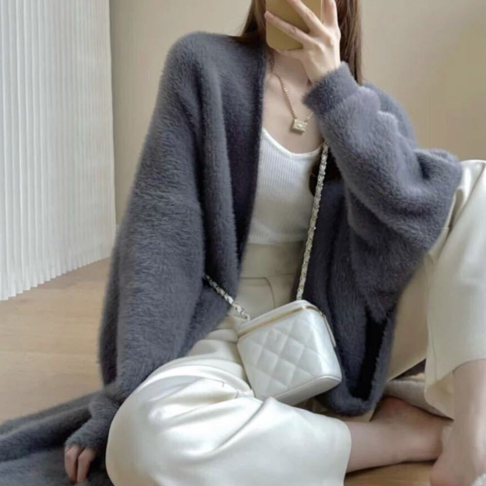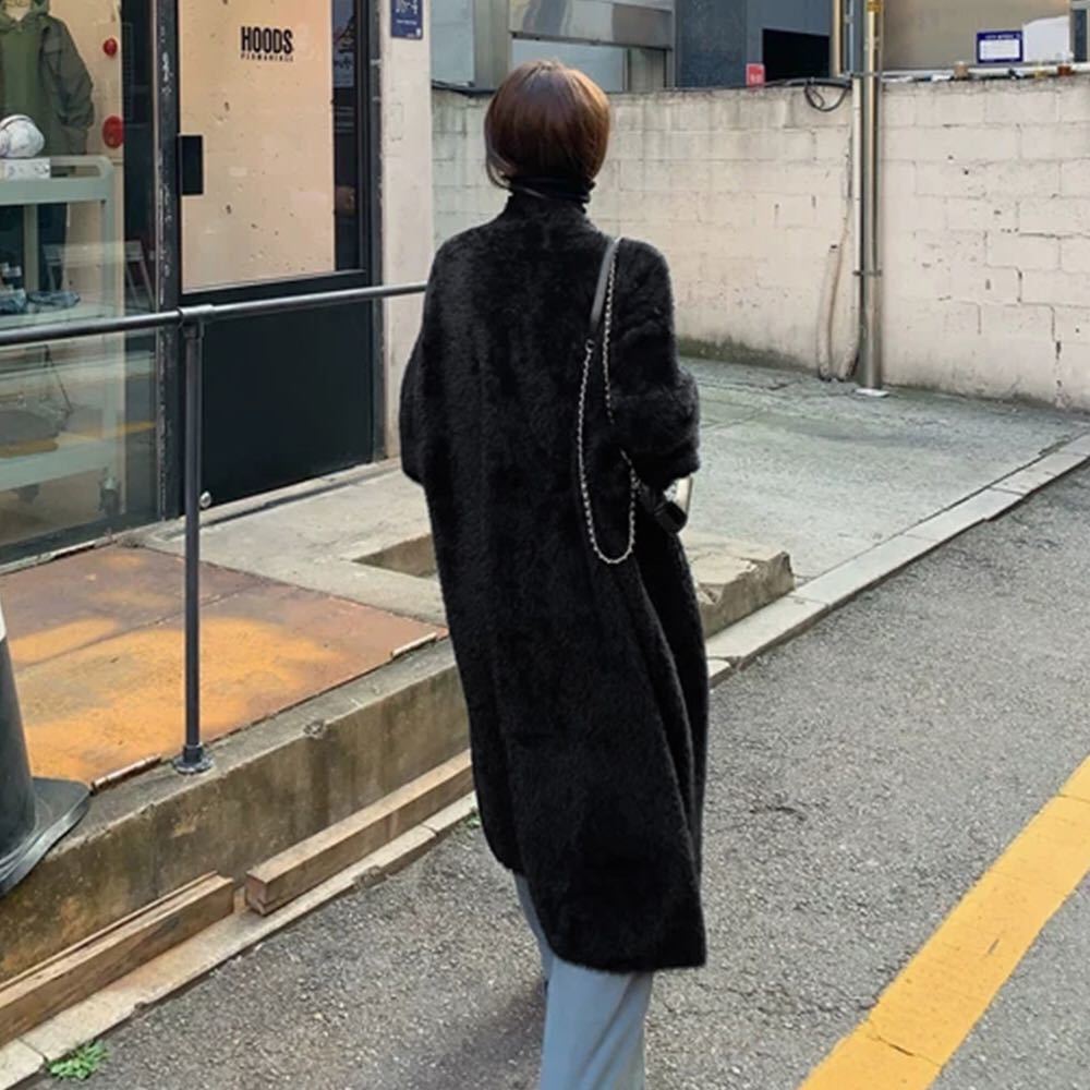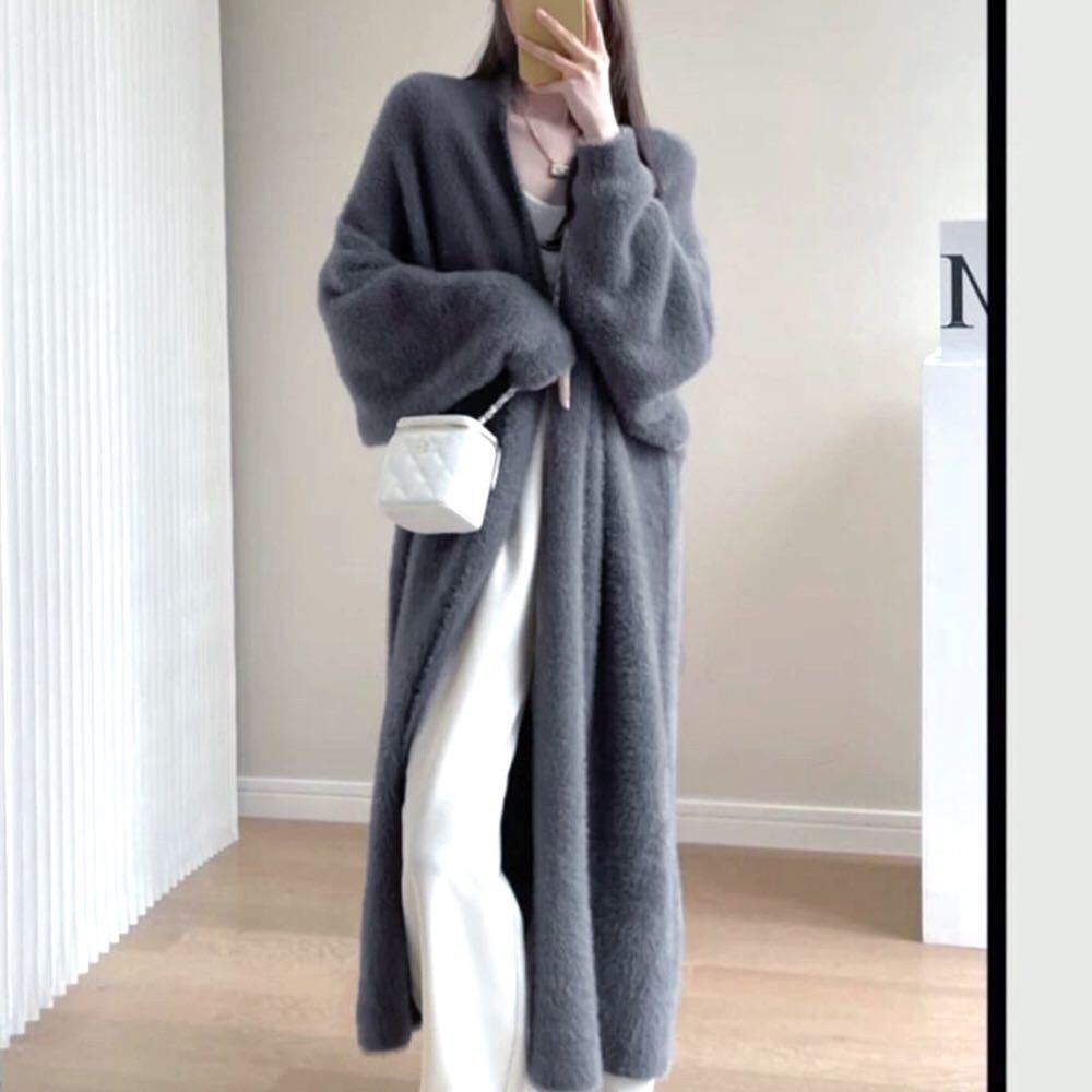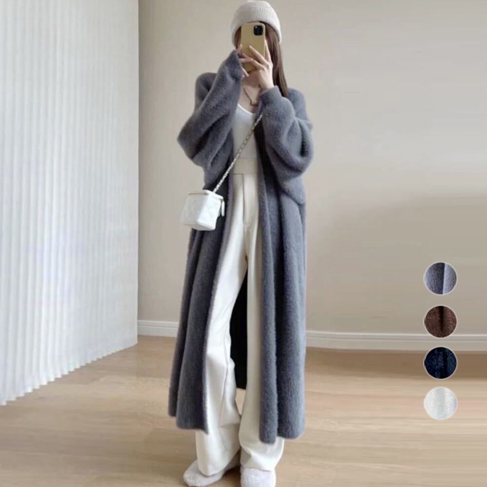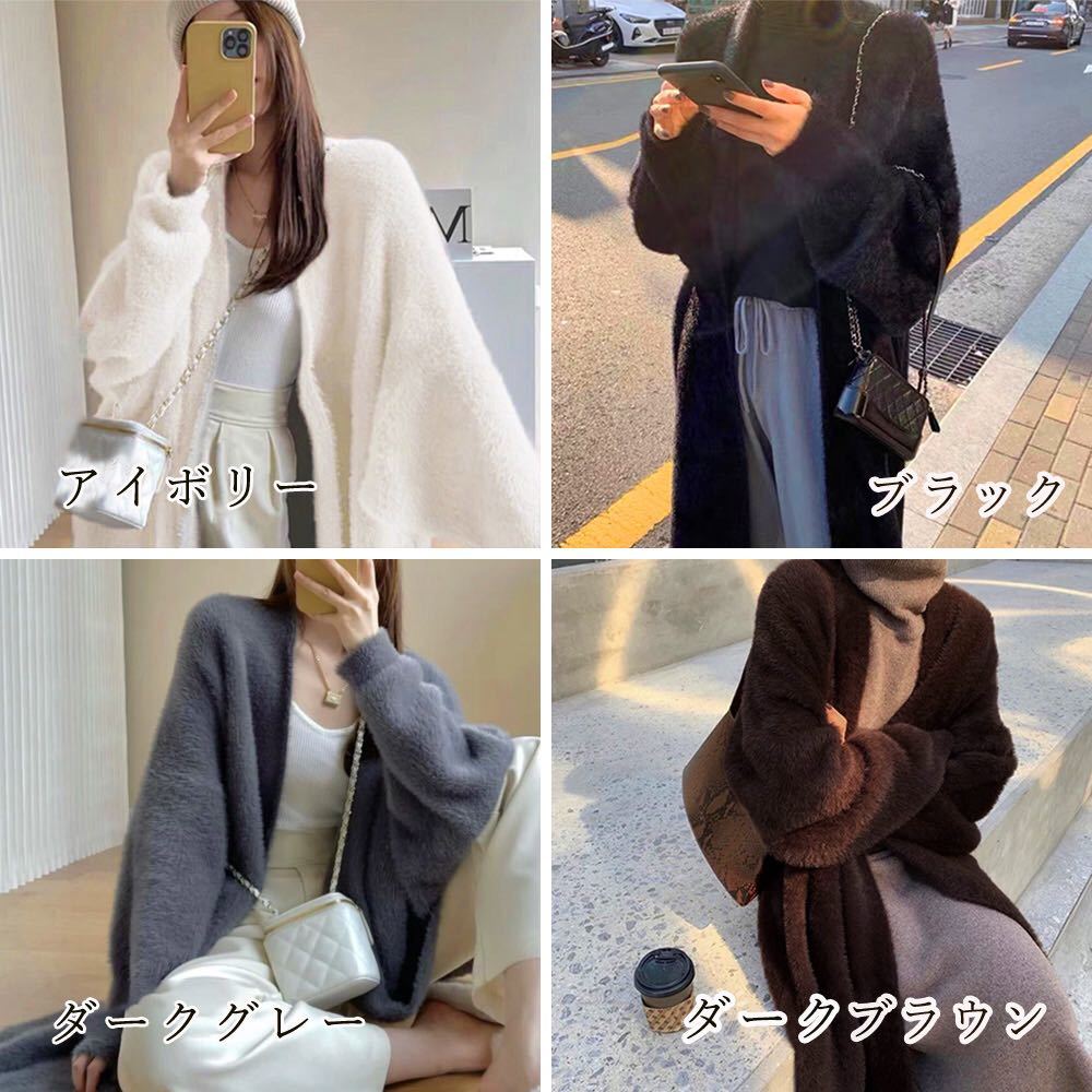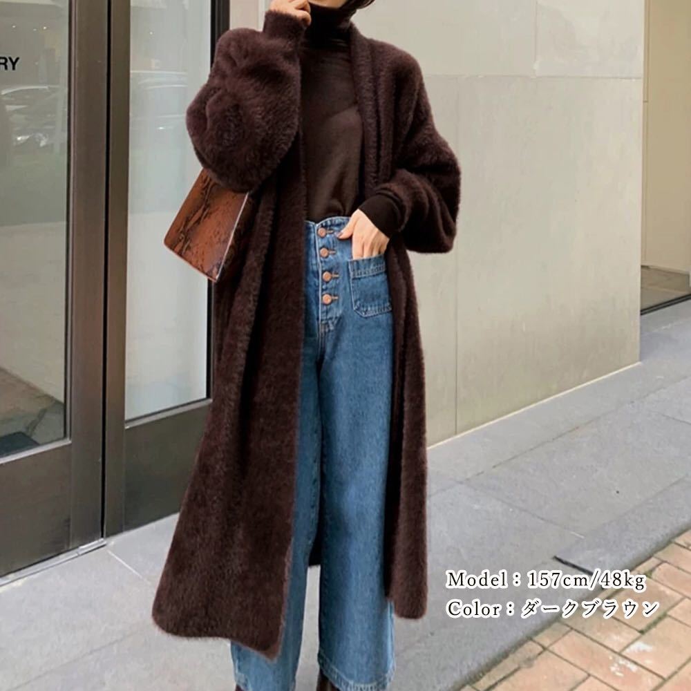 ふわふわシャギーニットとボリューム感のある袖が大人可愛い印象を与えてくれるロングカーディガンです
