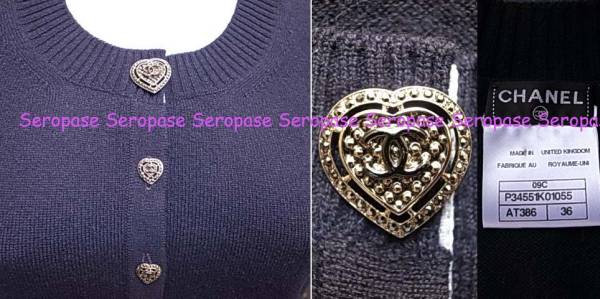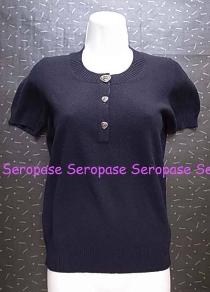 ★09CシャネルCHANELハートCCボタンカシミヤ 半袖セーター紺36