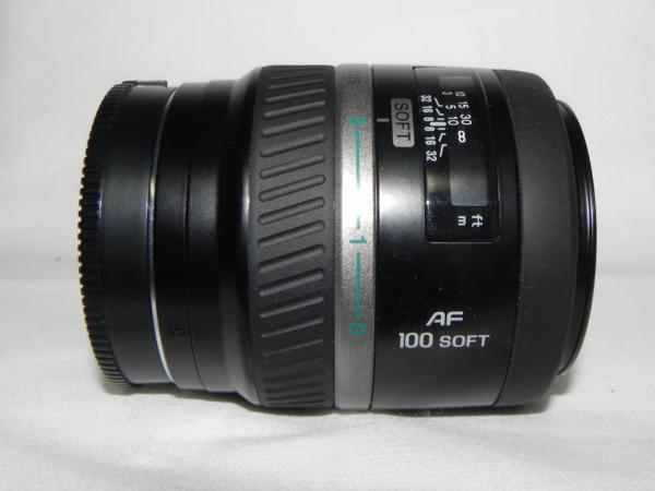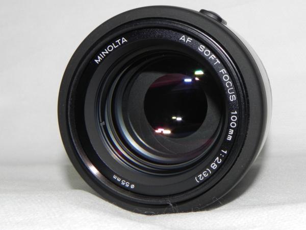 ●Minolta AF Soft Focus 100mm/f 2.8 レンズ。品物の外観に多少スレ、小傷があり、レンズに傷、カビは御座いません、中玉に埃があり、中古良品です。付属品は蓋、キャップ、フド、ケ-ス、箱です。