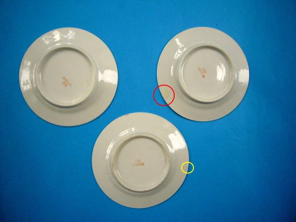 | 商品紹介 | お詳しい方にお願い致します。 写真のものセット売りとさせて頂きます。 裏面に補修のあるものもあります。(写真2枚目赤〇印参照) ざっと拭きましたがヨゴレがあります。 写真でご判断できるようでしたらお願いいたします。 (写真では実際の色が出にくい場合がありますが、ご了解下さい。) 気がついたものとして 裏面に補修のあるものもあります。(写真2枚目赤〇印参照) 写真2枚目黄色〇印に若干の窯キズと思われる部位があります。 写真でご覧の様な色落ちがあります。 中古品ですので経年の色褪せ、ヨゴレ、小キズ 微細なホツ、プリントのズレ、薄れなどがあります。 製造時のムラ、凹凸、窯キズ、塗料の付着 プリントの切れている部位もあります。(写真参照) 釉のかかっていない部分があります。 他にも難があるかも知れません。 その場合はご容赦下さい。 見落とし、書き落としがあるかもしれませんので 画像にてご判断下さい。 写真のものが全てです。 写真でご判断下さる様お願い申し上げます。 落札時に出品者からのメッセージが届きますのでご覧下さい。 (マイオークションの通知設定を非通知にしている場合は届きません) メールが届かない場合はお手数ですがご連絡下さい。 |