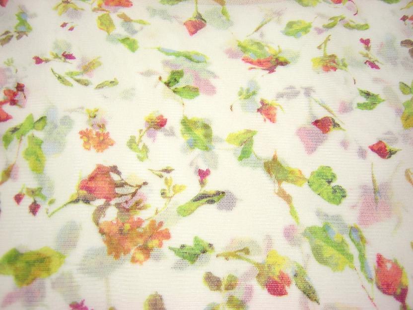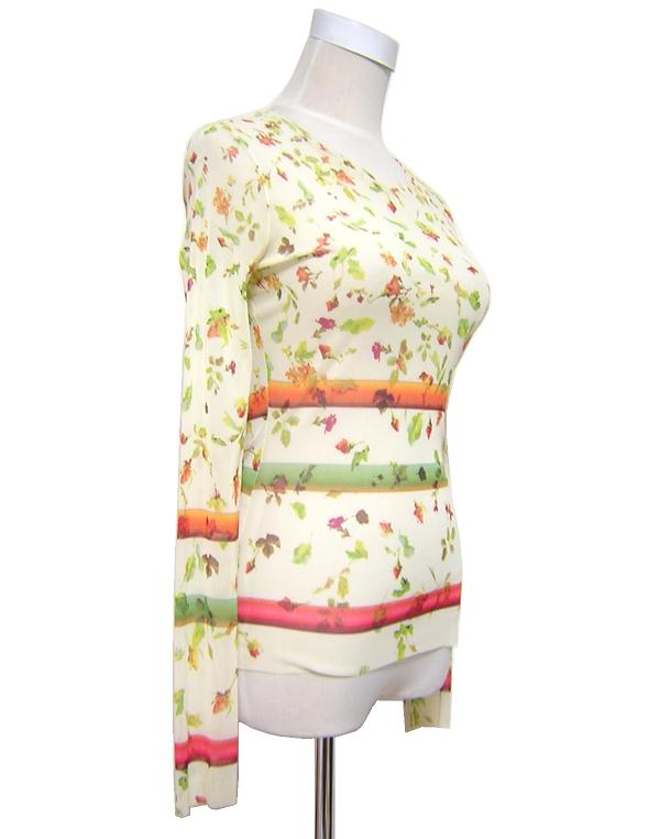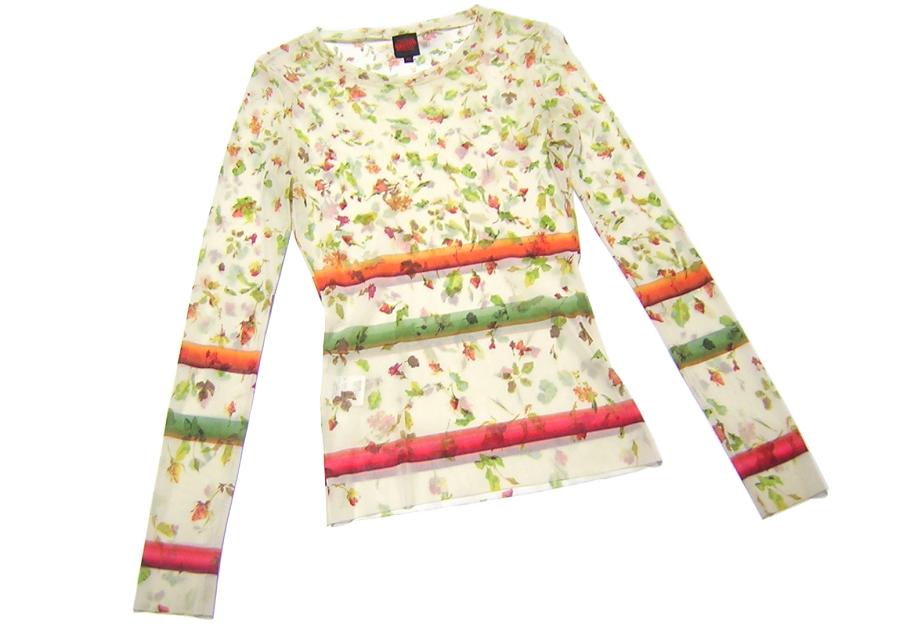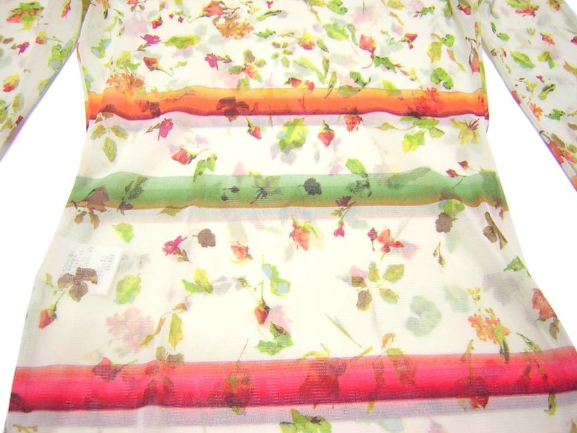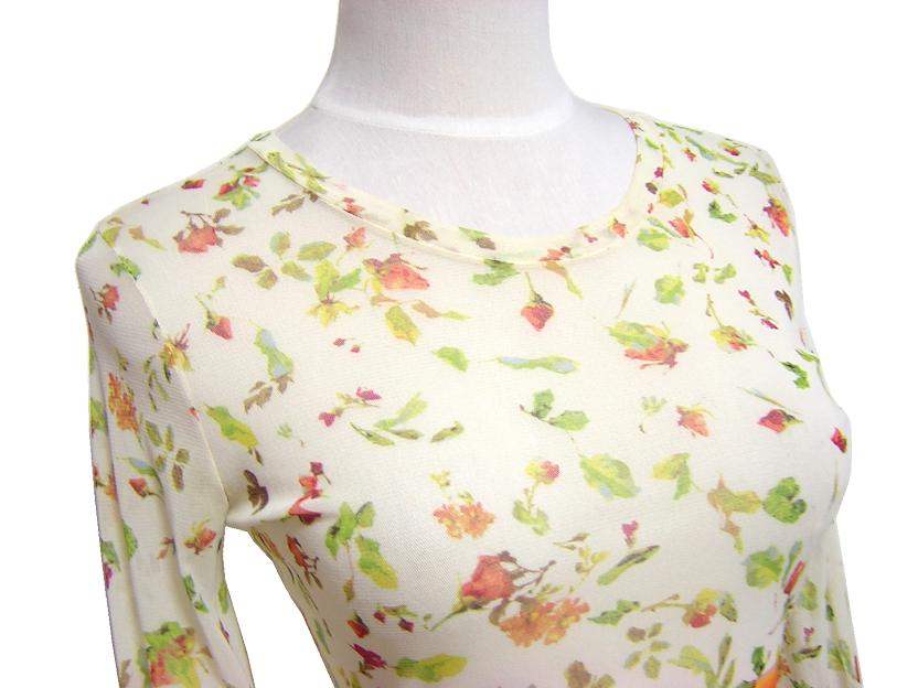 Jean Paul GAULTIER フュージョン のオンワード樫山製、 花柄チュールトップスでございます。 伸縮性あり/透け感あり | |