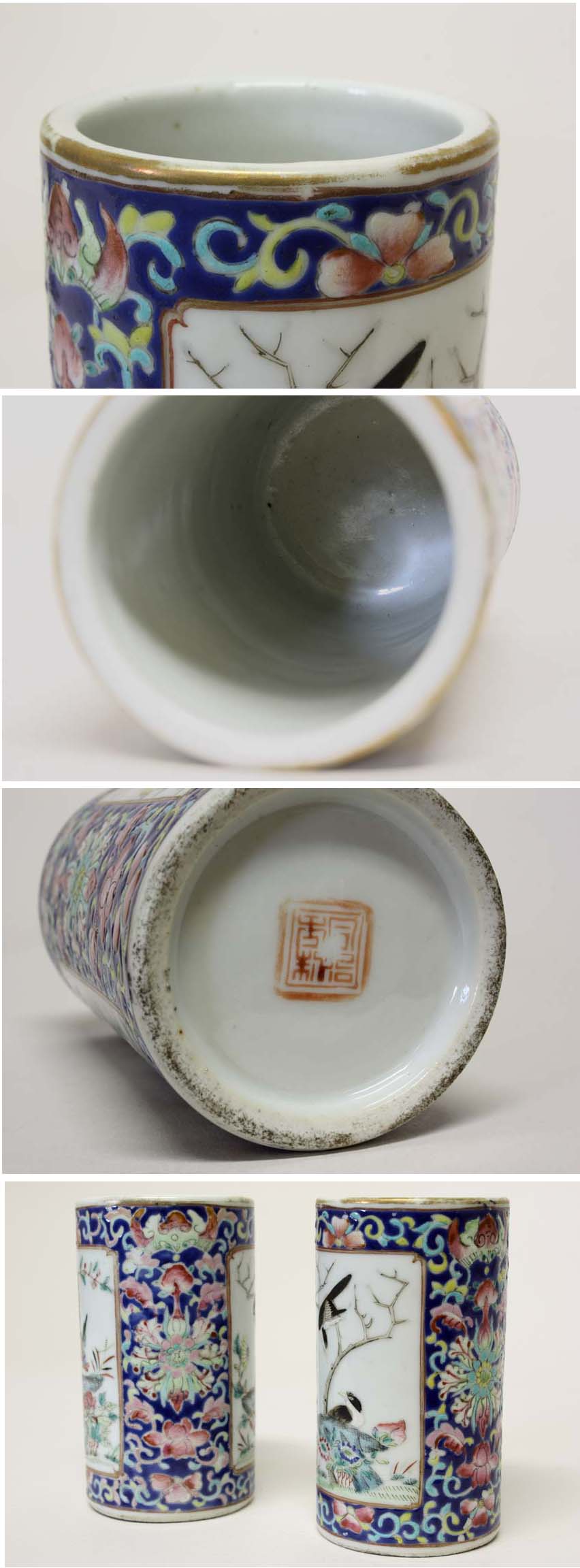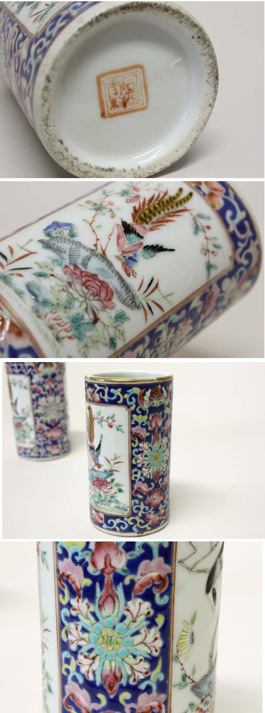 * サイズ・・・高さ:120 径:65 ㎜ *丁寧な粉彩の唐草文の中に窓絵が2か所あり、それぞれ違った絵が描かれた素晴らしい物です。箱付です。 詳細は掲載写真をご参考下さい。 ご理解いただける方のみご入札をお願いいたします。 ※寸法に若干の誤差が生じる場合もございます。目安としてご参考下さい。 ※画像につきましては、PC環境により実物と色合い等、若干異なる場合がございますので、予めご了承ください。 |