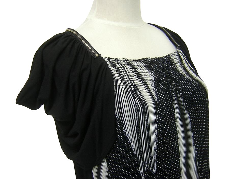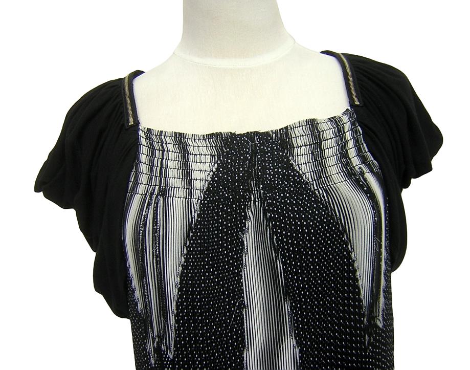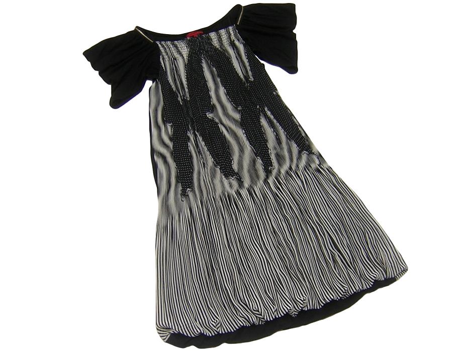VIVIENNE TAM の、 バタフライ柄プリーツワンピースでございます。 伸縮性あり/見頃2枚仕立て/バルーンヘム | |