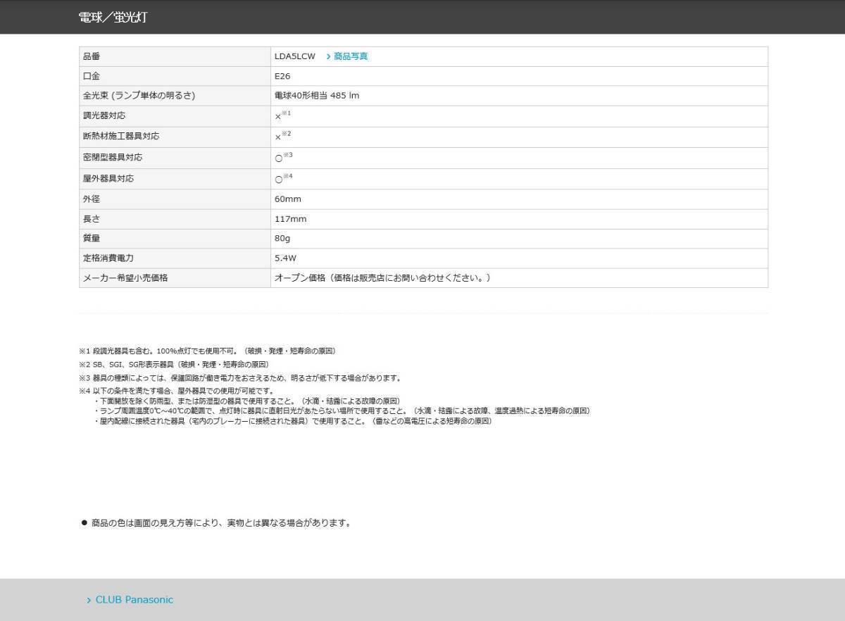 ★おまけで パナソニックLED LDA5L/C/Wをサービスします。(¥3,000 で購入 電球色 100V 4.4W)