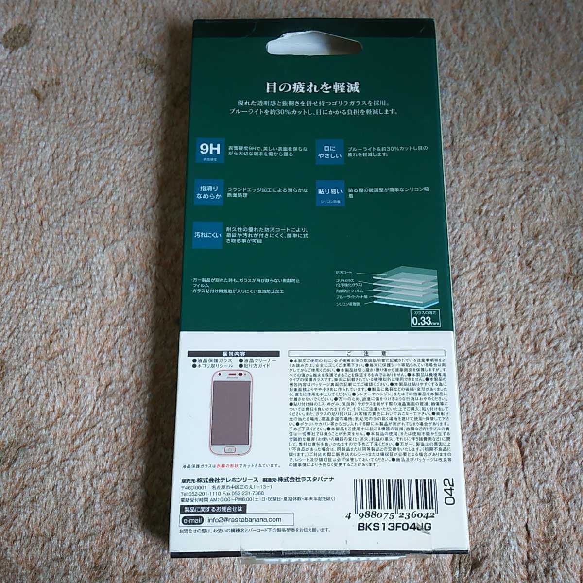 ◎ラスタバナナ RastaBanana らくらくスマートフォン4 F-04J用 ゴリラガラス&ブルーライトカット BKS13F04JG