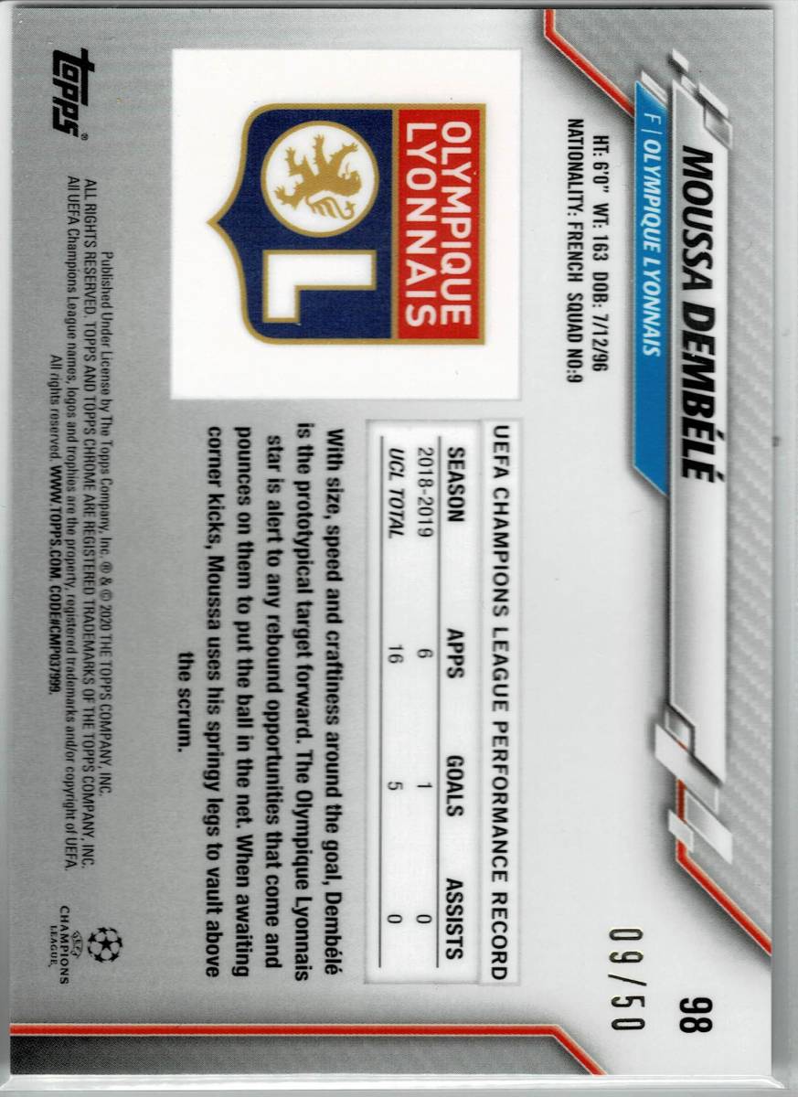 2019-20 Topps Chrome UEFA Champions League Moussa Dembele Gold Refractor 9/50 Jersey No.
