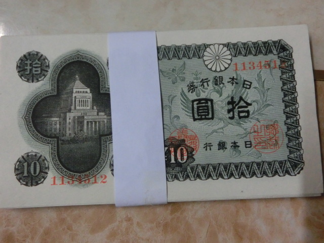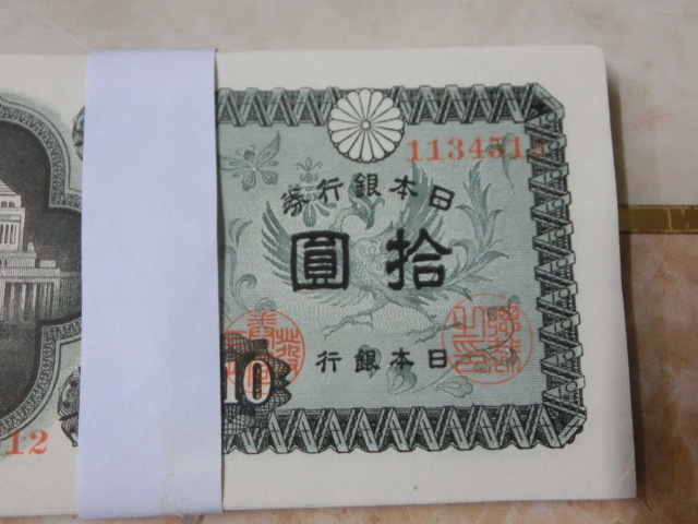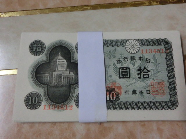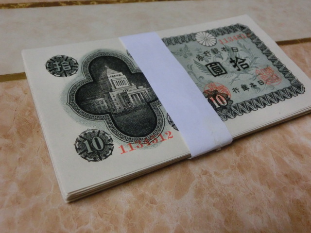 ★ 日本銀行券A号10円 議事堂10円 極美品 50枚 ★ No.102
