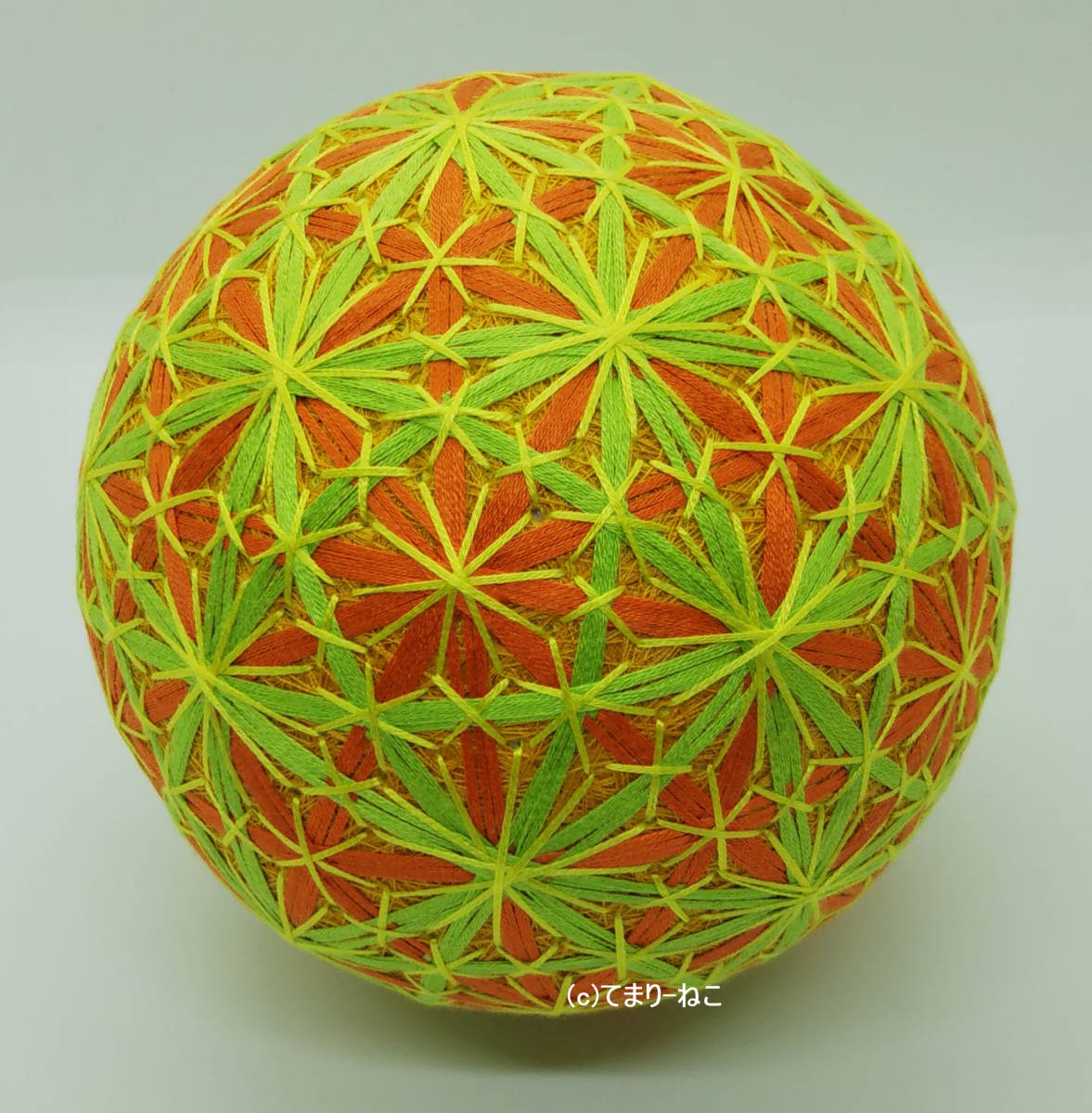 | 商品名 | 絹てまり「42面七宝麻の葉、蜜柑」オレンジ地 12cm 手まり 手毬 手鞠 |