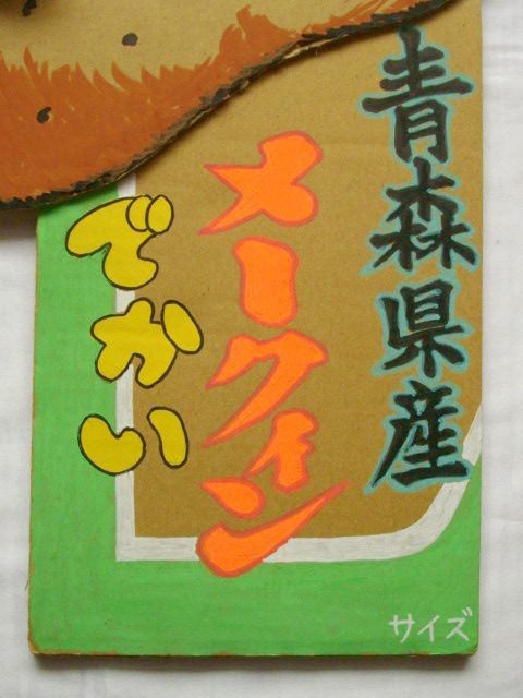メークイン広告用/じゃがいも広告用立体ポップ/店内売り場置き型立体ポップ/青森県産メークイン/Lサイズ/店舗販促用/ダンボールアート工作/ハンドメイド★新品未使用/送料込み★ ●コンディション:新品未使用品(手作り) ●材料:ダンボール、油性マジック、ポスターカラー、接着剤(工作用ボンド)など ●サイズ: ・本体・・・(縦)約430mm (横)約270mm (厚み)約15mm~30mm(立体時) ●総重量:約65g ・スーパーやコンビニなどの店舗販促用の置き型立体ポップになります。 ・知人のスーパー経営者に、コストをかけずに店内用の目立つ広告制作を依頼された事がきっかけで、発注商品納品後の廃棄ダンボールを利用した広告制作をスタートしました。 ・実際に陳列棚に置いてみたイメージです(画像①参照)。 ・本体の“馬のキャラクター”部分は立体になります(画像④参照)。 ・「青森県産」の部分はお取扱い商品の産地に変更してください。 ・あくまでもダンボールを利用した素人の工作ですので、接着剤のはみ出しや制作中に生じたキズや汚れなどがある場合がありますので、神経質な方や完璧なモノをお求めの方のご入札はお控えください。 ※他サイトでも出品しておりますので、売り切れの際はご容赦ください。 ★コンディション:N ※画像でご確認下さい。