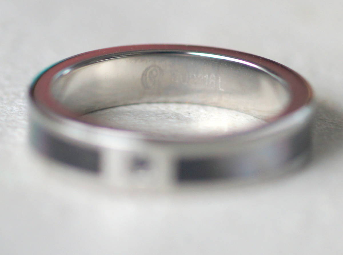 AQUA SILVER サージカルステンレス ブラックダイヤモンド風石付き ブラックシェル リング 約15号 SUS316L刻印あり アクアシルバー