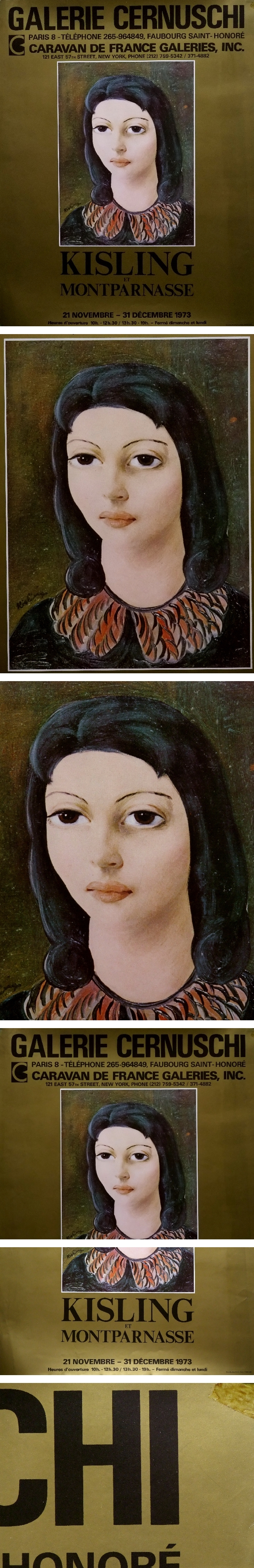 | 説明 | 1973年に制作された、非常に希少性の高いヴィンテージ・ギャラリーポスターです。 キスリングの真骨頂である、透き通るような肌の質感が実に見事に再現されています。 その滑らかな肌色と、背景や衣装の色彩との鮮烈なコントラストは、観る者の視線を一瞬で奪い去る魔力を持っています。 今から約50年以上前に刷られたこのポスターは、単なる複製画を超えた歴史的資料としての価値を帯びています。 当時の空気感を纏った質感は、現行のプリントでは決して出せない、シックで滋味深い味わいがあります。 約62cm×49cmという迫力のサイズは、一枚飾るだけでお部屋をパリの私立美術館のような洗練された空間へと変貌させます。 |