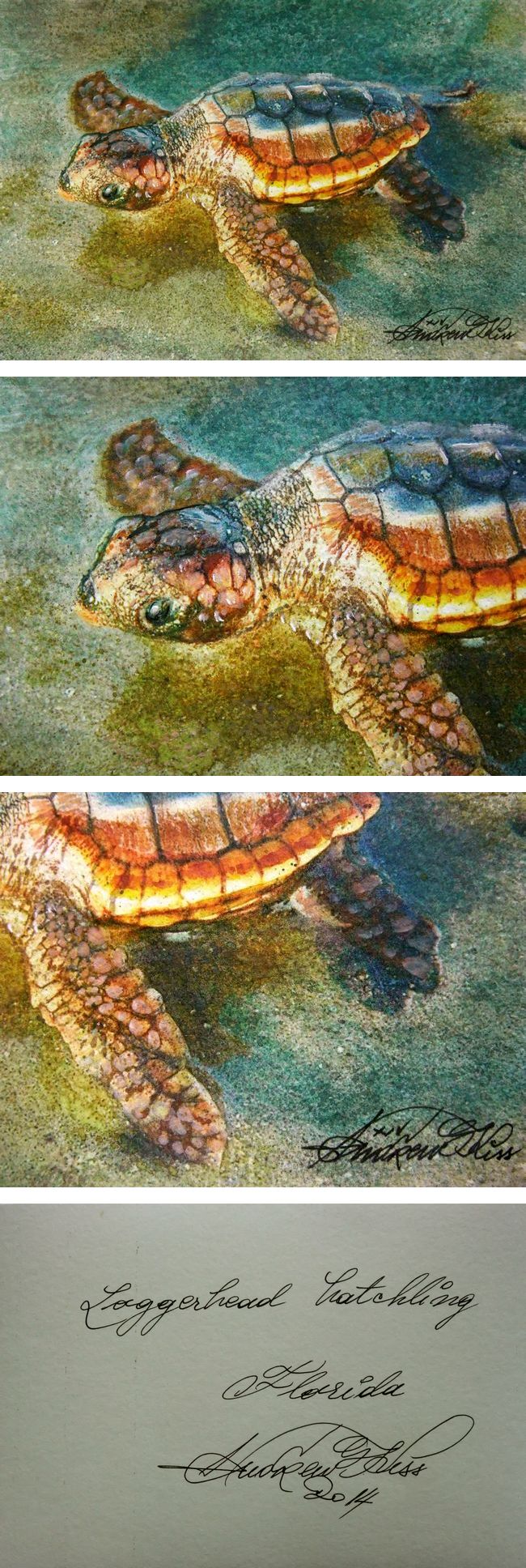 | 美しい水彩画「孵化したアカウミガメ大海への旅立ち」 | |