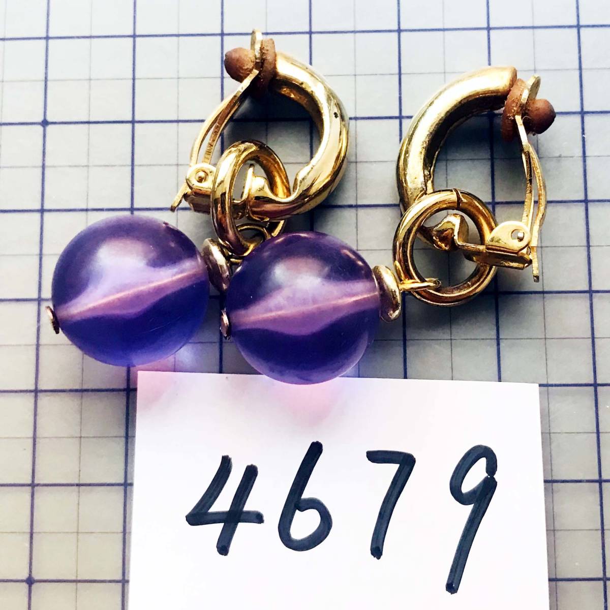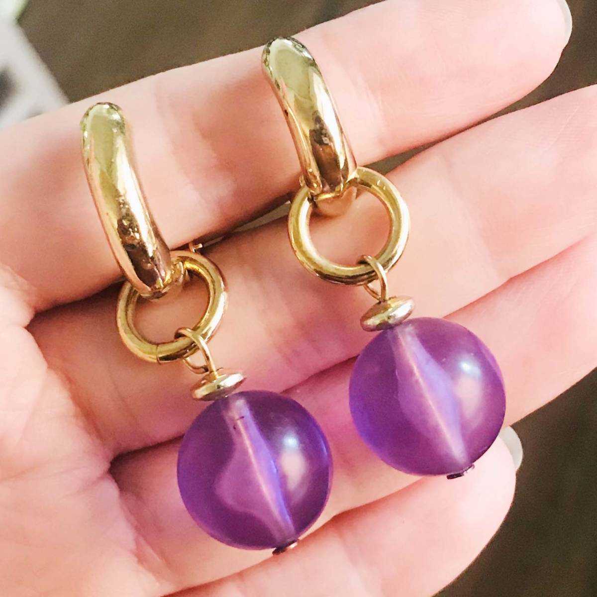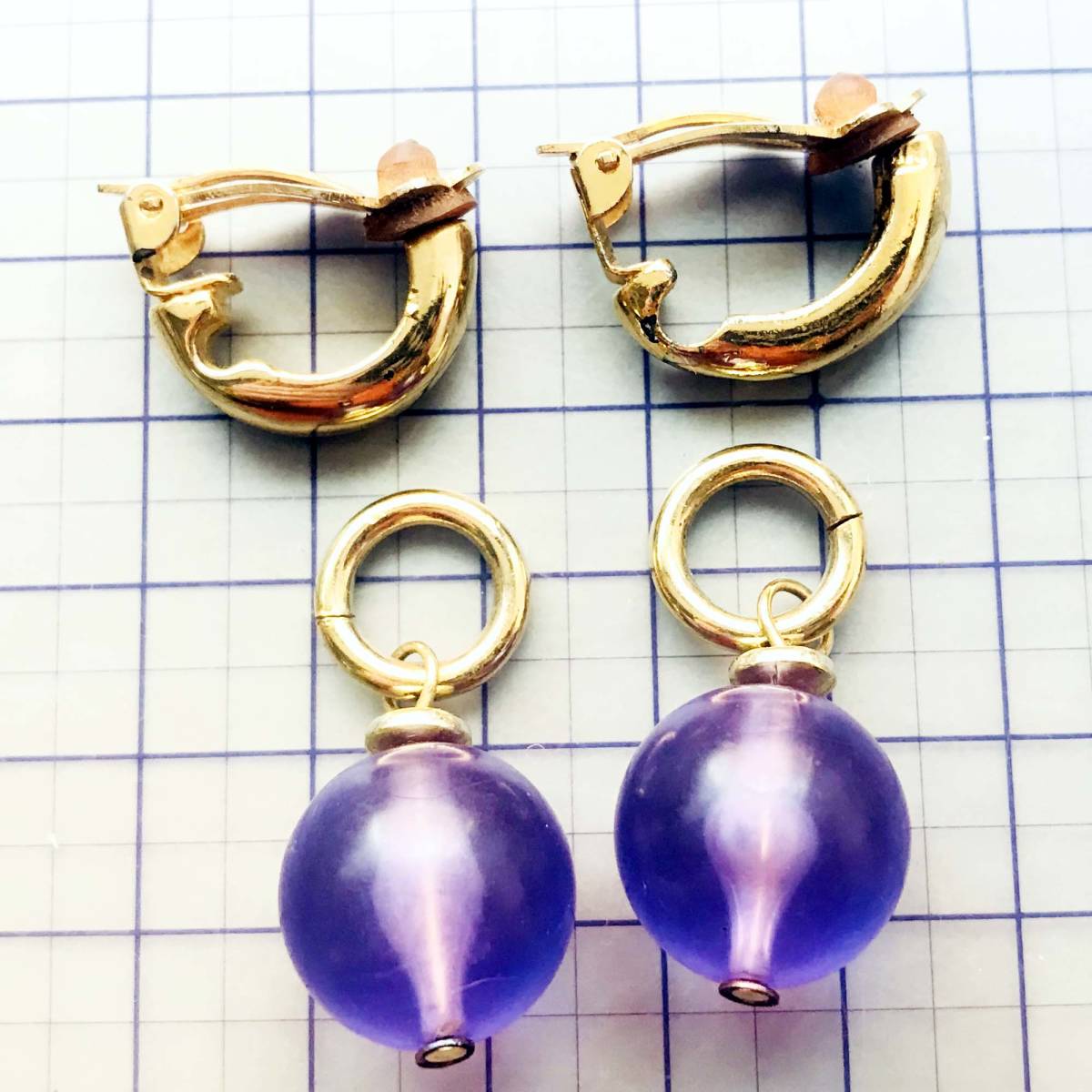 美品 カラーボール ゴールド 2WAY イヤリング No.4679