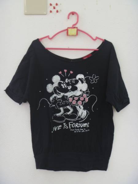 ●ミッキー&ミニーマウス♪半袖Tシャツ 黒☆大きめMサイズ 使用感あり