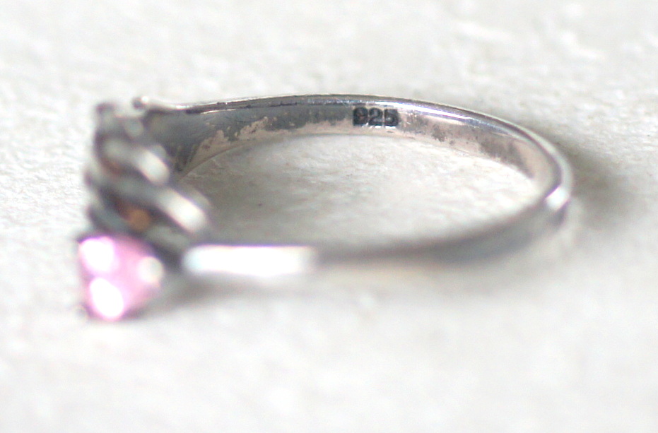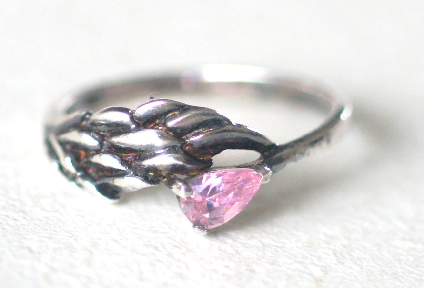 シルバー925製ピンクの石に羽がついたデザインのリングです。